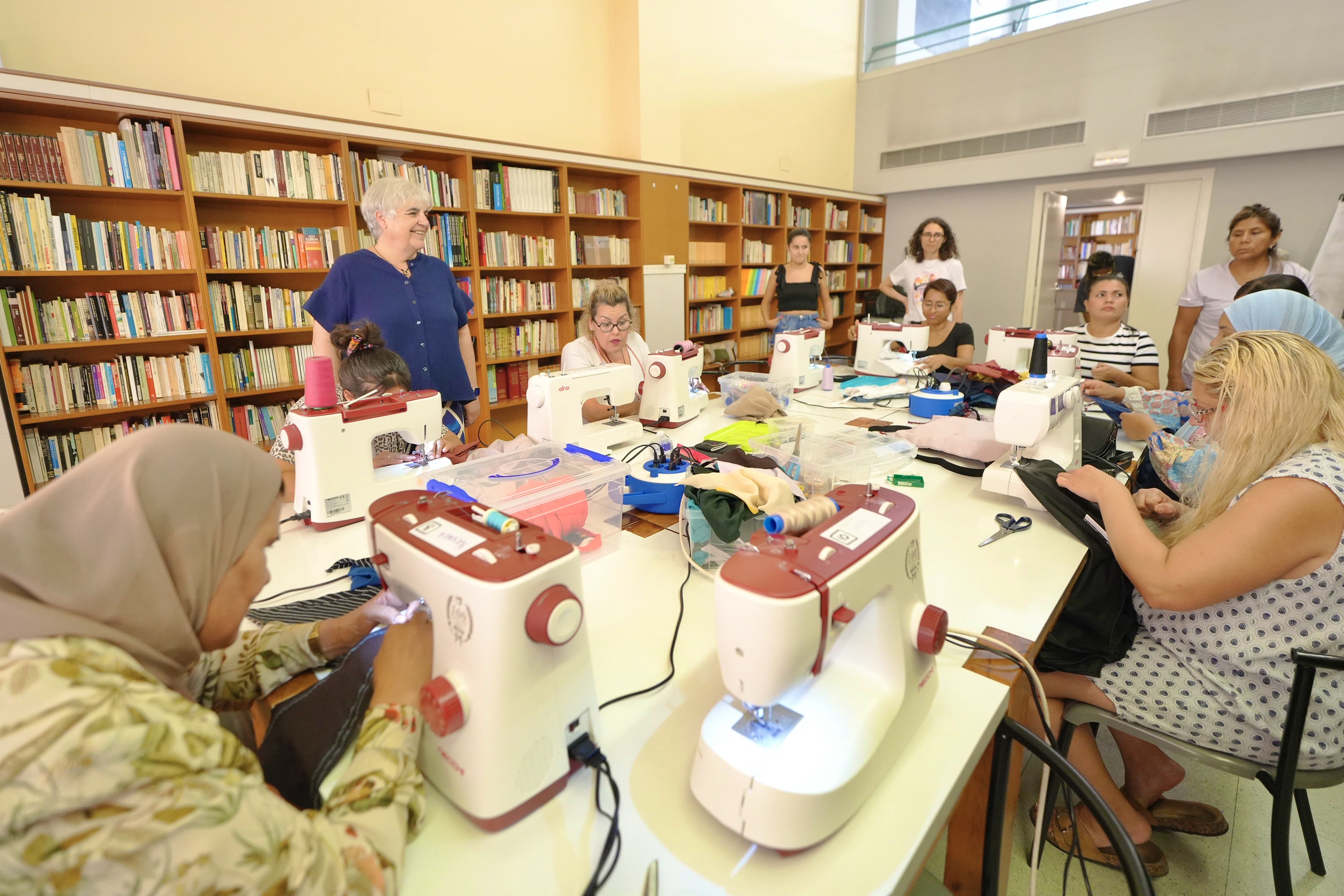La alcaldesa accidental, Carme Valls, visita la actividad de costura compartida