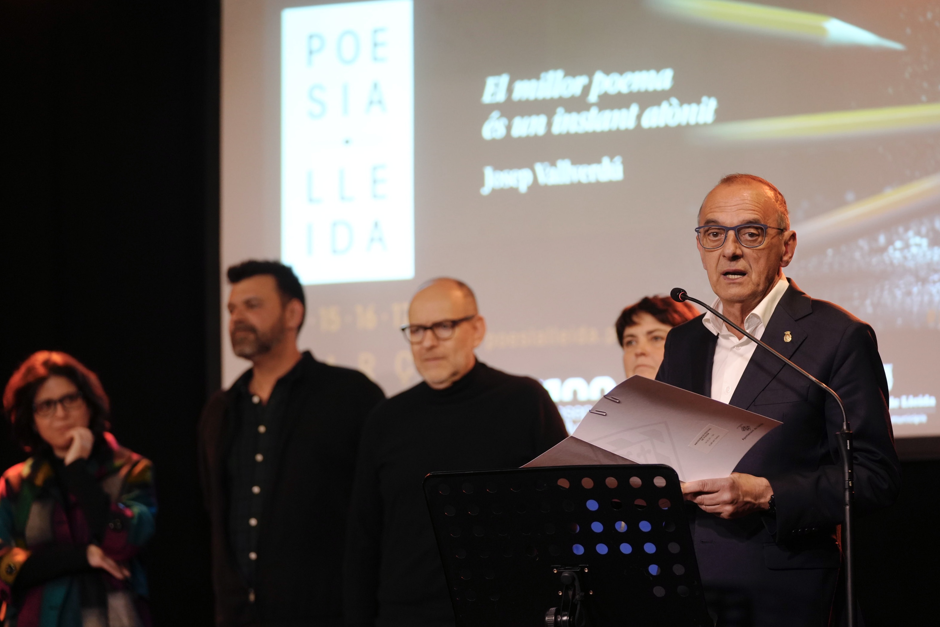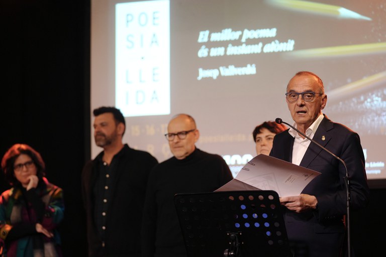 El paer en cap, Miquel Pueyo, ha participado en la inauguración del festival, acompañado de la vicepresidenta de la Diputación de Lleida, Estefania Rufach; el concejal de Cultura, Ciudad y Transición Ecológica, Jaume Rutllant, y los dos comisarios de este evento poético, Anton Not y Àngels Gregori.
