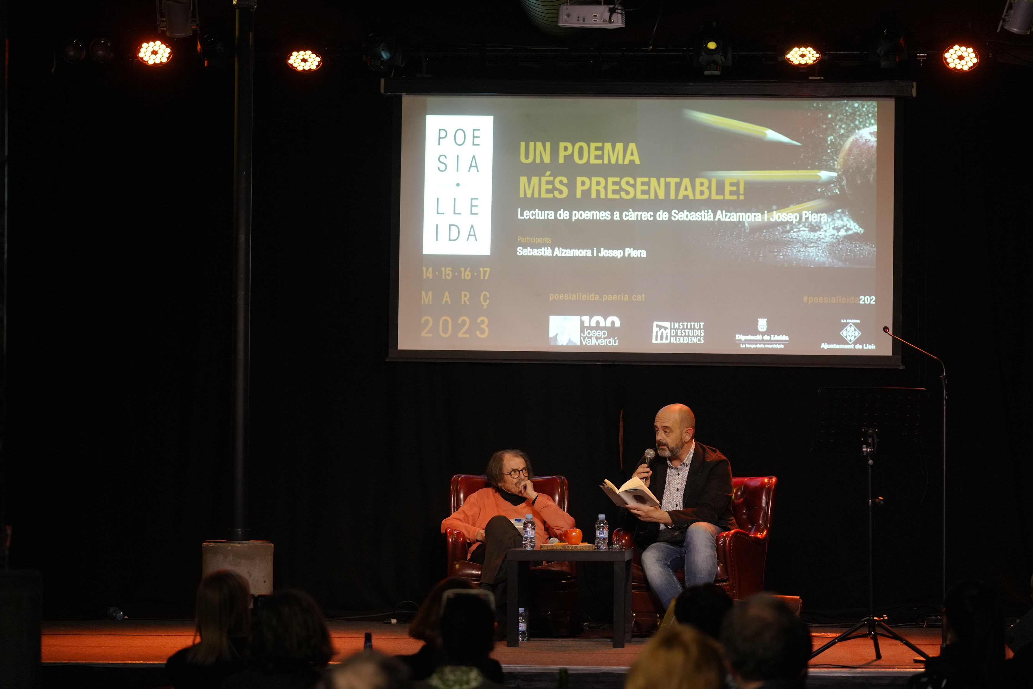 Para cerrar, se ha llevado a cabo una lectura de poemas a cargo de Sebastià Alzamora y Josep Piera bajo el título "Un poema más presentable!".
