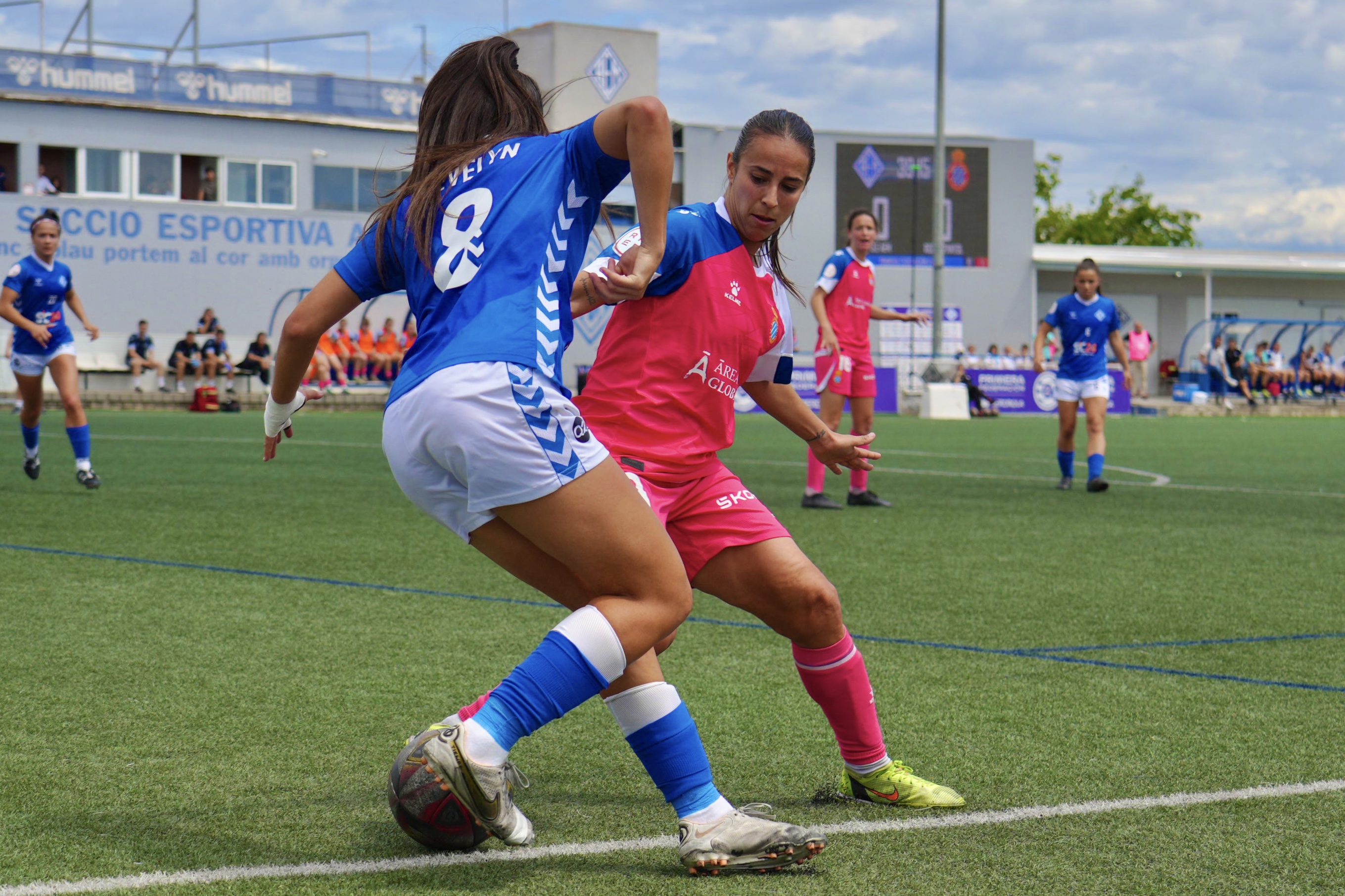 Gran ambiente en el Recasens en la ida de las semifinales para subir a la Liga F, pese a que la AEM ha perdido por 0-2 ante el Espanyol
