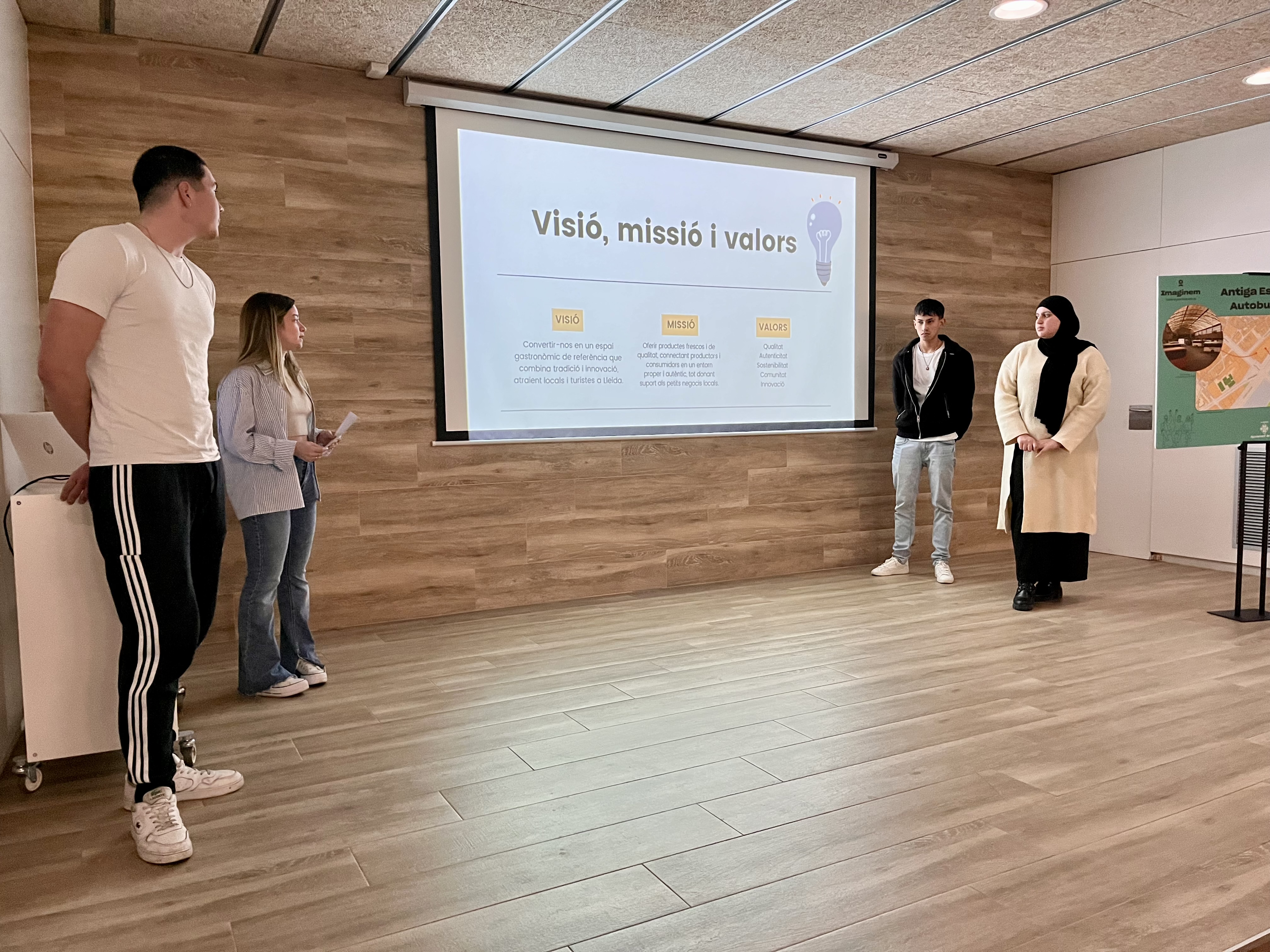 30 estudiantes de primer curso del Grado Superior de Administración y Finanzas de Ilerna han presentado esta mañana 8 proyectos que se tendrán en cuenta por el proceso participativo "Imaginemos la Antigua Estación de Autobuses". El concejal de Participación, Roberto Pino, ha asistido a las presentaciones y ha felicitado a los alumnos por sus propuestas, que se han centrado en desarrollar equipamientos de ocio y ocio, deporte, restauración y cultura.