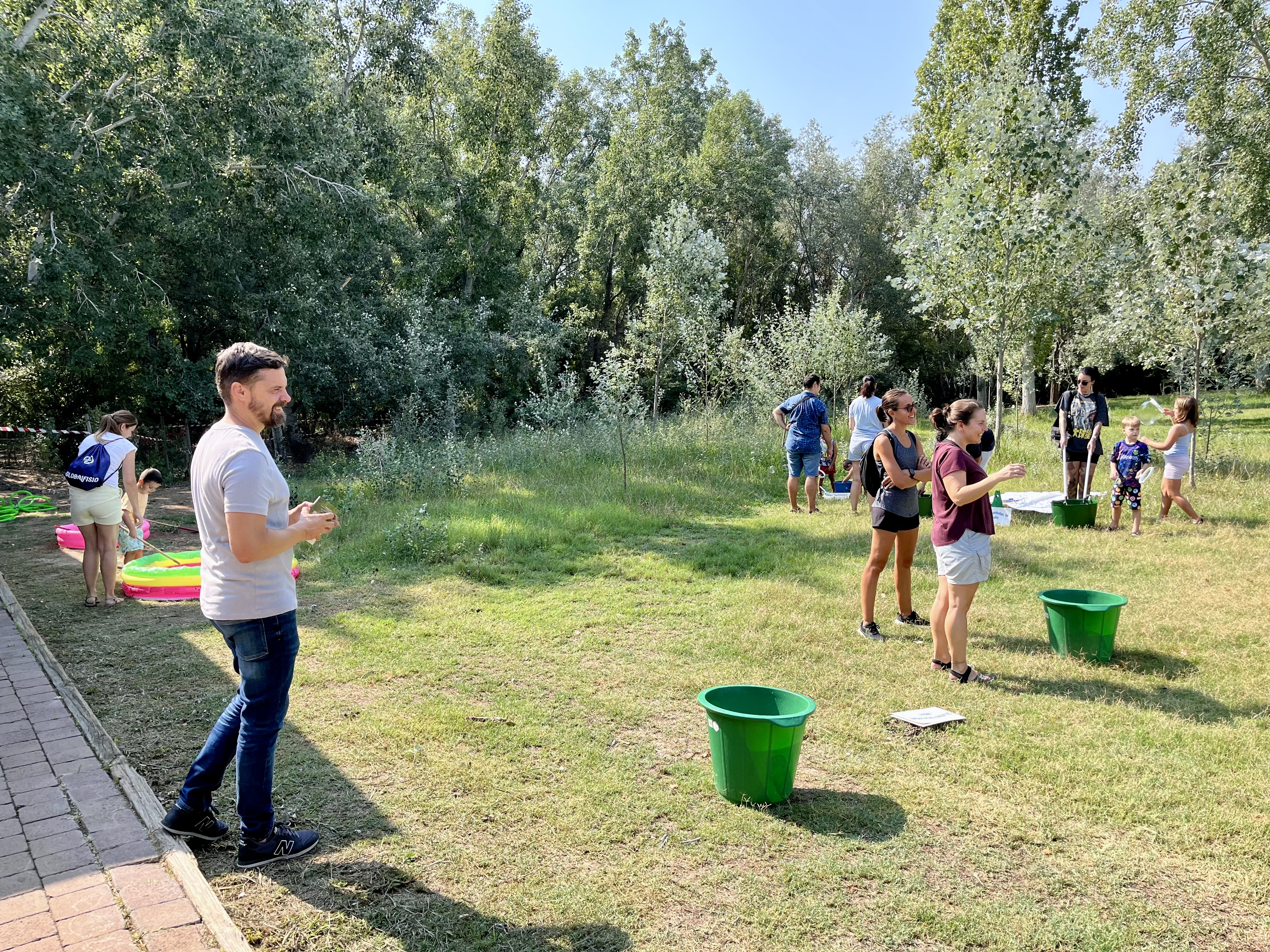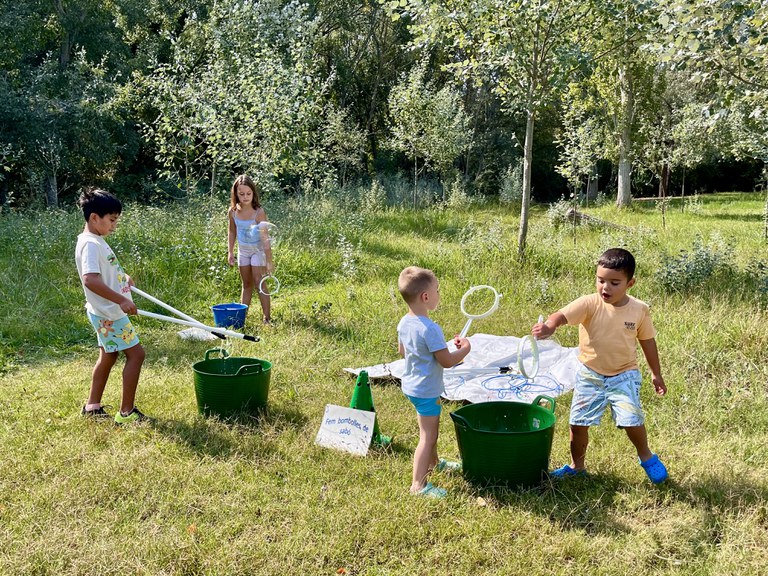 Los y las asistentes también han aprendido los nombres de algunos árboles presentes en el espacio natural, mientras simulaban el riego del arbolado, y han jugado a hacer pompas de jabón, para comprobar el efecto que tienen los productos químicos sobre los ecosistemas acuáticos.