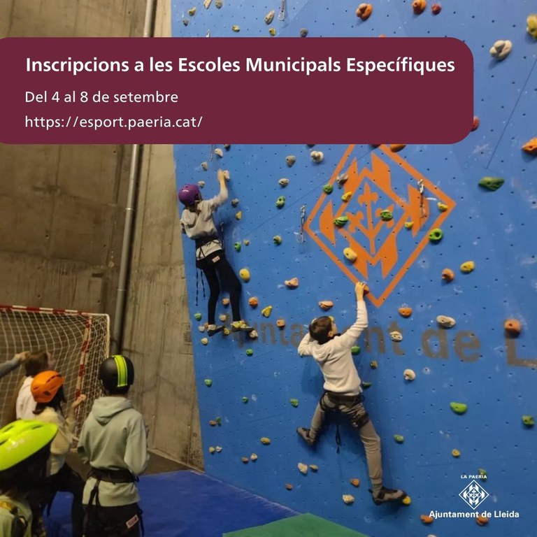 El Servicio de Deportes del Ayuntamiento de Lleida abre el próximo miércoles 4 de septiembre el período de preinscripción en las Escuelas Municipales Específicas 2024/2025, una iniciativa que tiene como objetivo facilitar el aprendizaje y mejora de la técnica en diversas modalidades deportivas, incidiendo también en la mejora del estado de forma física y mental del niño o niña. El período de preinscripción permanecerá abierto hasta el domingo 8 de septiembre.