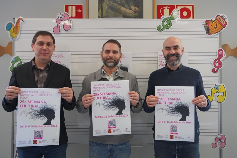 Lleida alberga, del 9 al 16 de febrero, una nueva edición de la Semana Cultural del Conservatorio y Escuela Municipal de Música de Lleida. El concejal de Juventud, Educación y Empleo, Xavier Blanco, presidió la presentación de este certamen, acompañado del director del Conservatorio y Escuela Municipal de Música de Lleida, Josep Lluís Boix, y el jefe de estudios, Agustí López.