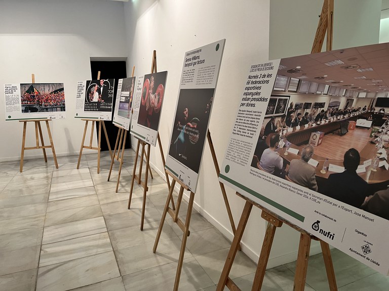 La Sala de Exposiciones del Ayuntamiento de Lleida comparte el espacio hasta el 20 de diciembre con la instalación de dos muestras “Desigualdad, mujer y deporte”, que se ha abierto hoy al público y “Mujeres invisibles”, que se puede visitar hasta el 5 de enero. La teniente de alcalde y concejala de Políticas Feministas, Carme Valls, ha explicado que esta exposición se ha creado para la Semana del Deporte Femenino en Lleida, que consta de la proyección y coloquio hoy del documental “Cabeza y corazón” y de la VI Jornada Comunicación, Mujer y Deporte del viernes.