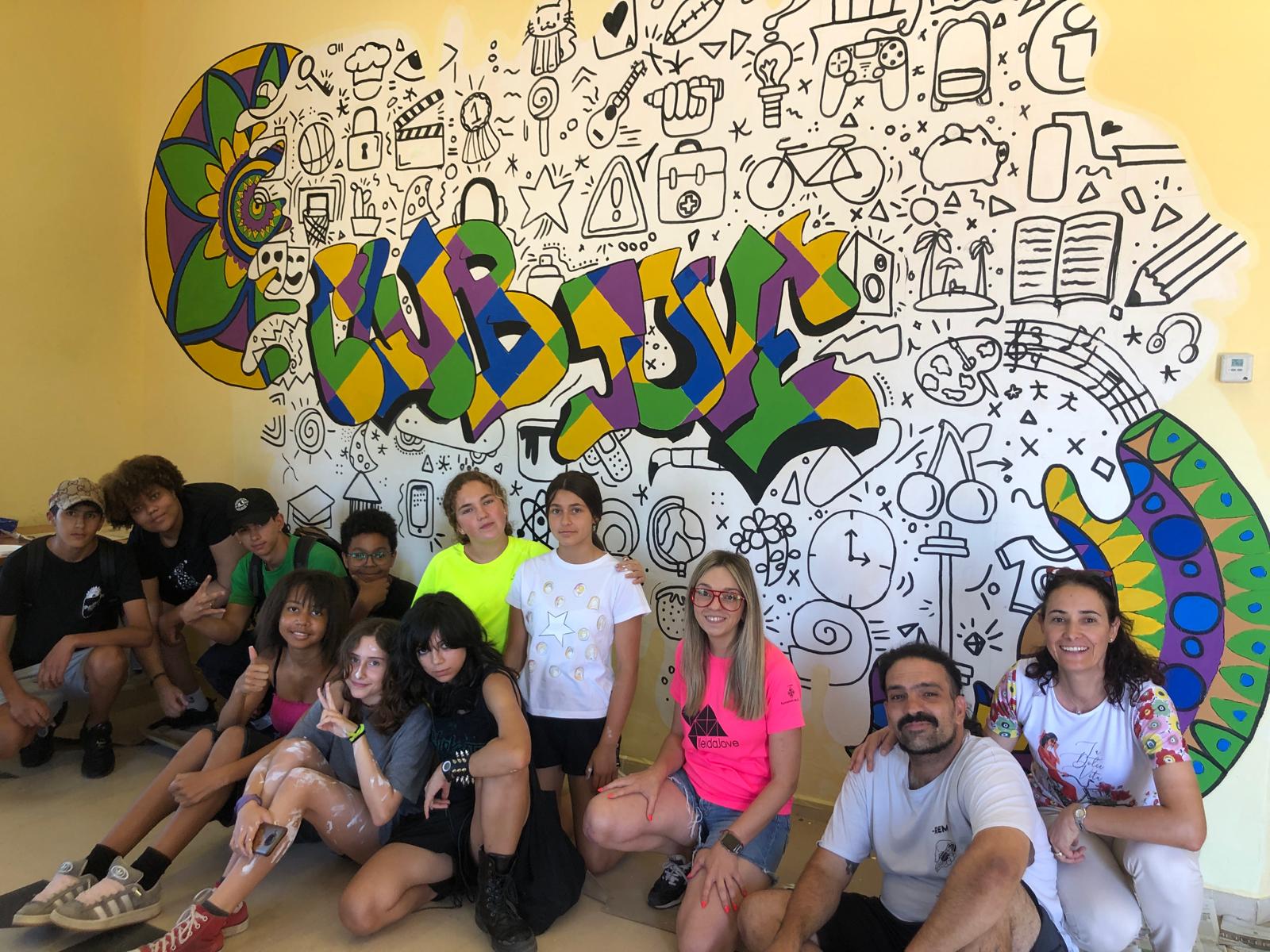 Finaliza la actividad de creación Street Art de la programación de verano de LleidaJove en el Club Jove Secà con la creación de un mural en el vestíbulo de Torre Queralt. La actividad, que comenzó este lunes, ha contado con la participación de 20 jóvenes de entre 13 y 20 años, que han recibido la ayuda y supervisión de la cooperativa Transformarem, especialistas en arte comunitario con voluntad de transformación social.