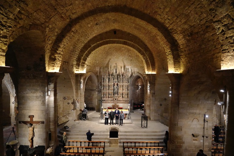 Visita para ver el resultado de los trabajos, con la consejera Natàlia Garriga, la directora adjunta de la Fundación La Caixa, Elisa Duran, y el Obispo de Lleida, Salvador Giménez. El Departamento de Cultura y la Fundación "la Caixa" han invertido cerca de un millón de euros en la restauración de la iglesia