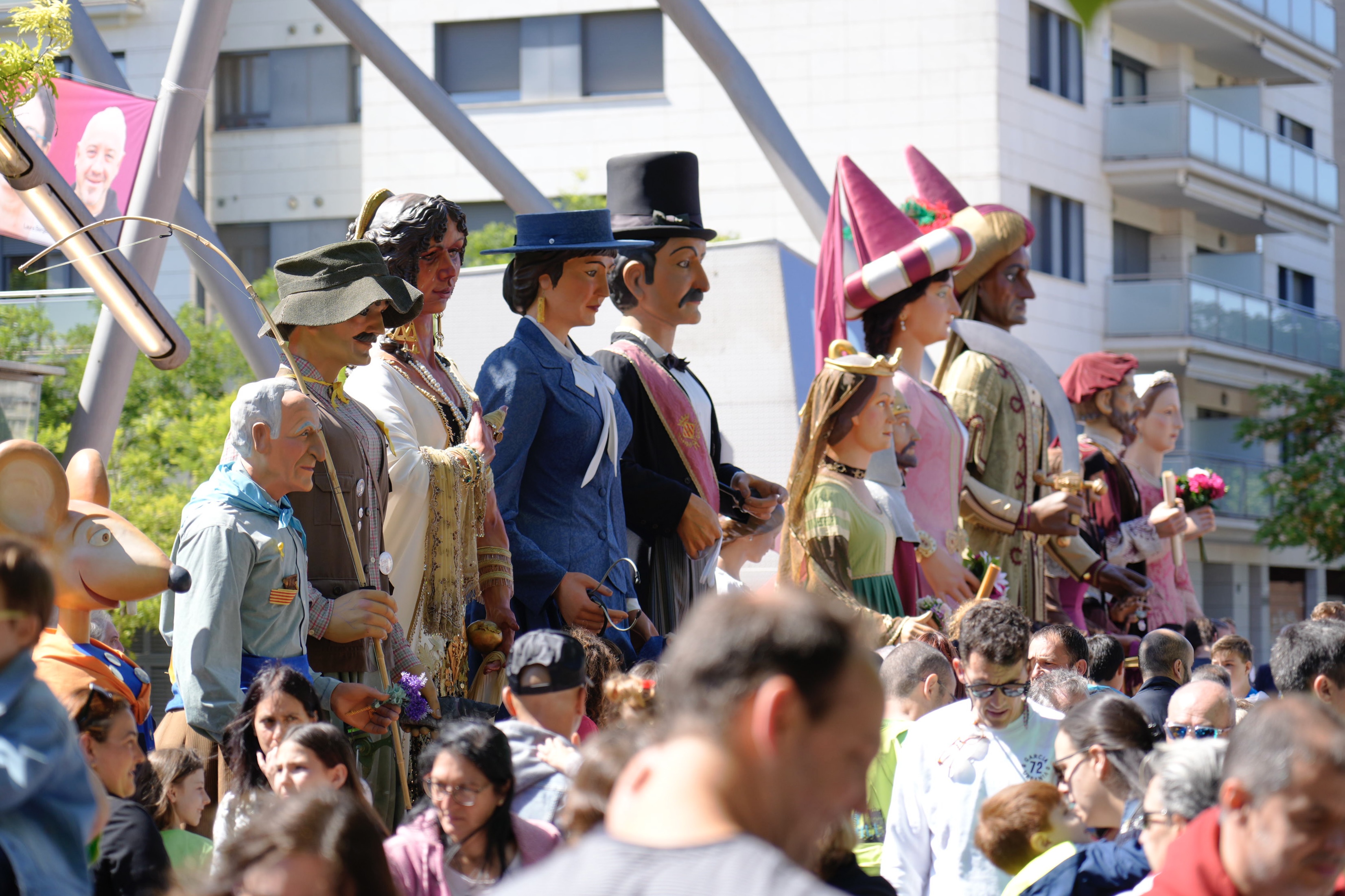 La plaza Blas Infante ha acogido esta mañana el XXXVIII Trobada de Gegants con los invitados especiales de Barcelona, los Gigantes del Pi, y los Gegants de Viserta, de Monistrol de Montserrat. Este séquito ha protagonizado un pasacalle desde la plaza y por la pasarela hacia la avenida Madrid, donde esperaban a los gigantes de Lleida. Han pasado por delante del monumento a los Gigantes, la calle Saracíbar, la avenida Blondel, la calle Vila de Foix, la plaza de la Catedral, la calle Mayor, la calle Cavallers y la avenida Blondel nuevamente, para finalizar con el baile final de los gigantes en la plaza Sant Joan.