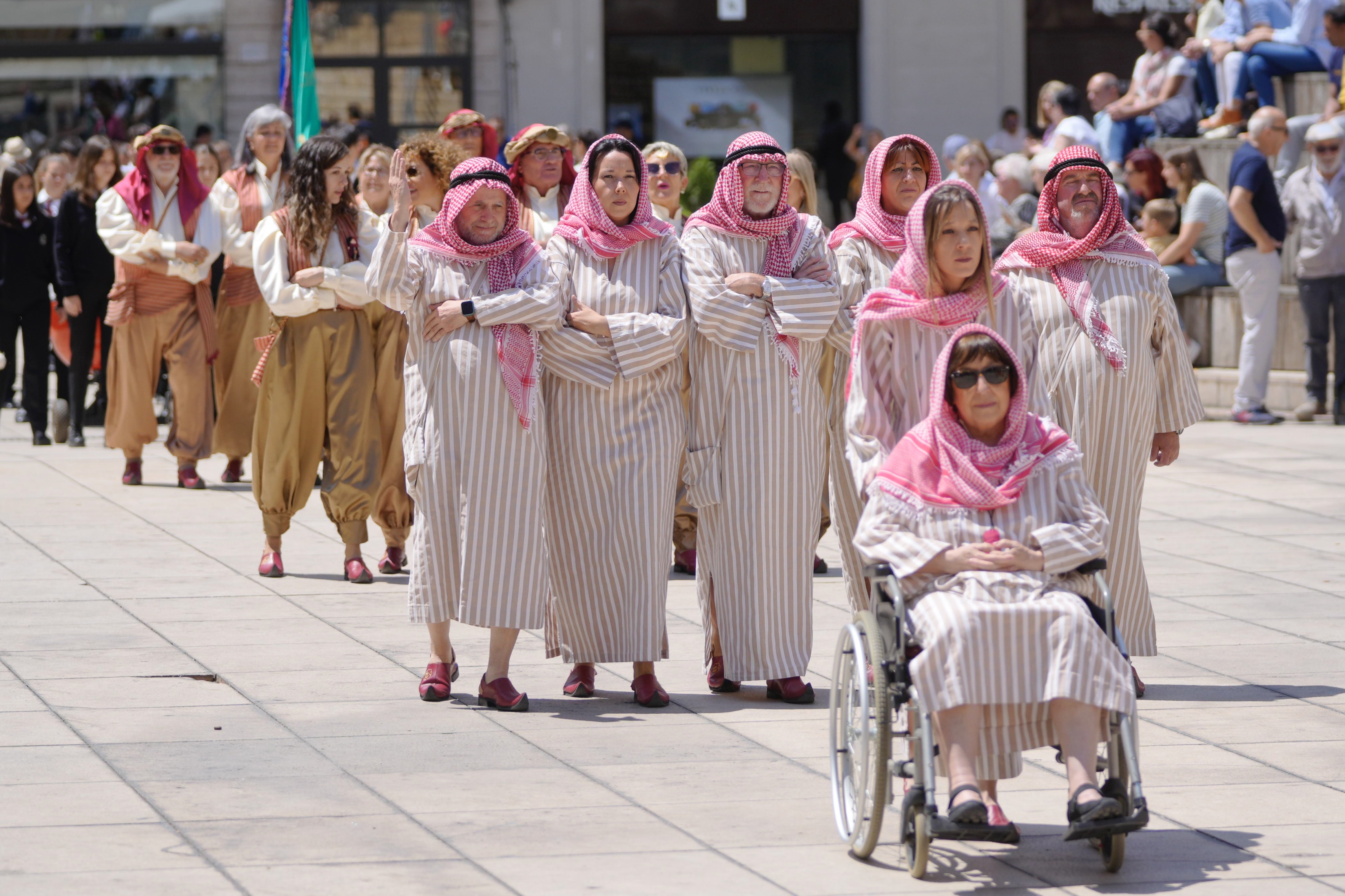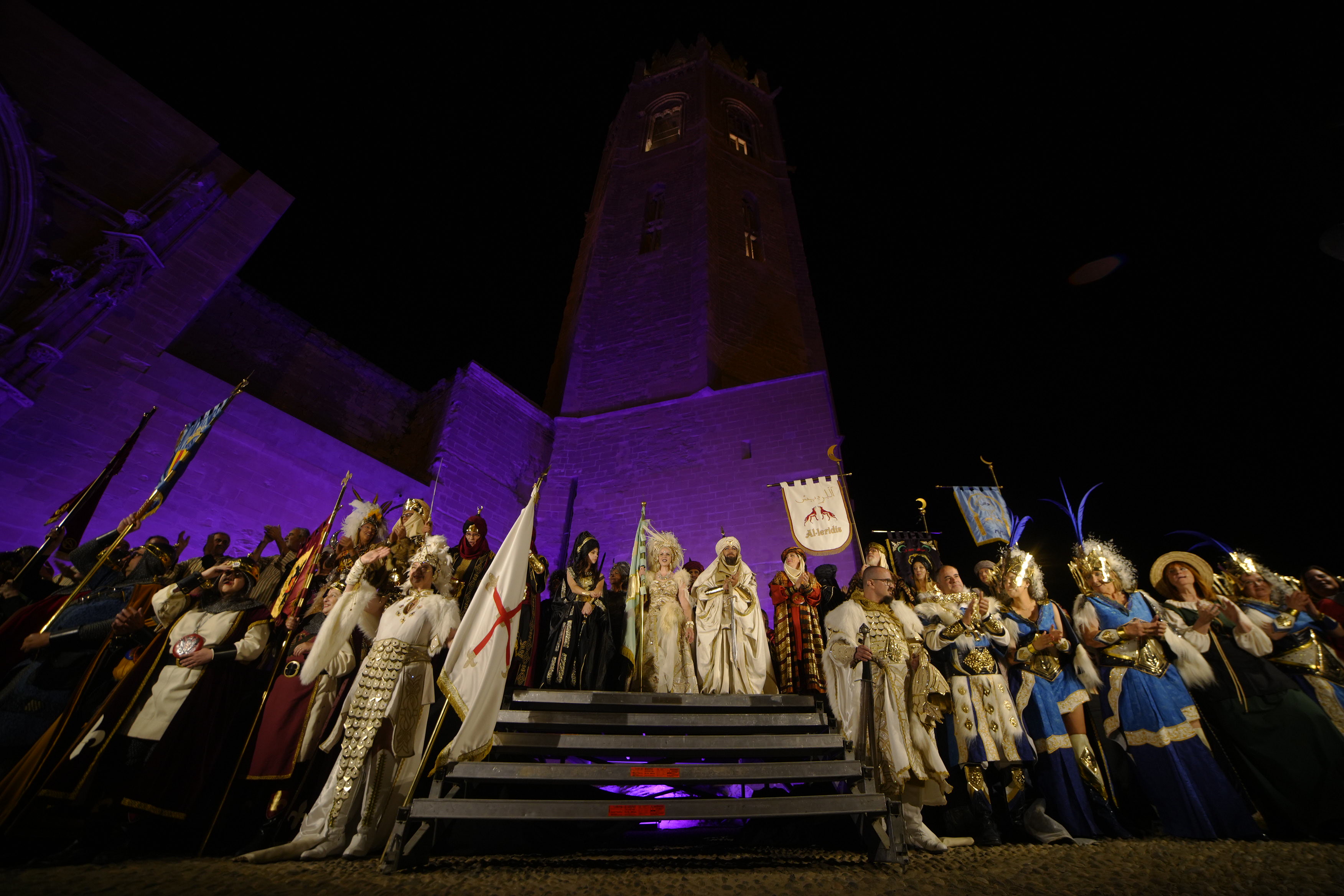 Por la tarde, las seis comparsas de Moros y Cristianos se han concentrado en la Puerta del León de la Seu Vella para iniciar el desfile de lucimiento de las tropas de ambos bandos en un itinerario que ha recorrido las calles Sant Martí, Tallada y Cavallers; para seguir por la avenida de Blondel y la avenida de Madrid hasta el Palau de la Paeria. En esta zona se han habilitado sillas para que el público pudiera seguir el espectáculo.