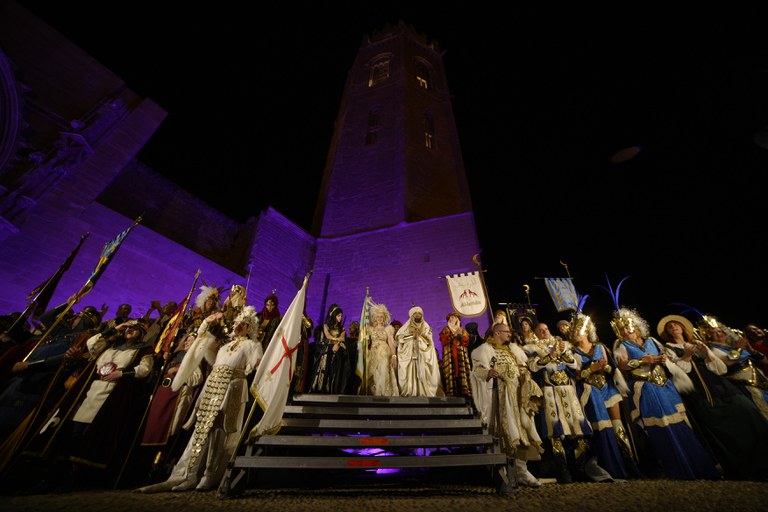 Por la noche, las tropas cristianas y moras se han librado a una cruenta batalla final con el texto a cargo de Antoni Gelonch Viladegut. Continuando con la tradicional alternancia de vencedores y vencidos, el bando moro ha vuelto a ocupar la ciudad, poniendo fin a la ocupación del último año del bando cristiano.