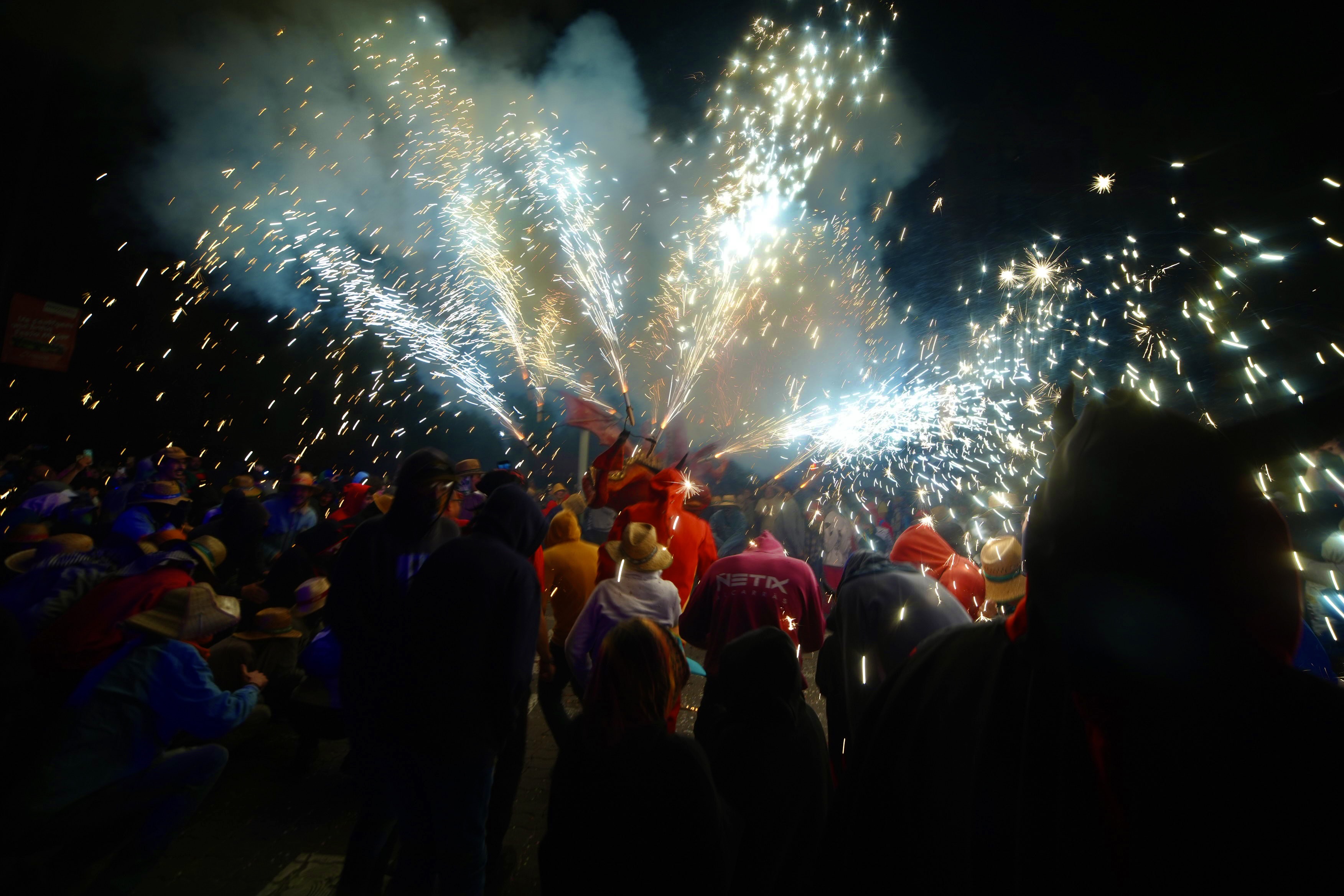 Los Diables de Lleida, els Dimonis dels Trons, el Drac Carrincló y els Marraquets recorren el centro de la ciudad para llenarlo de fuego y chispas en un ambiente infernal y festivo