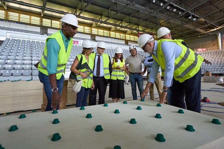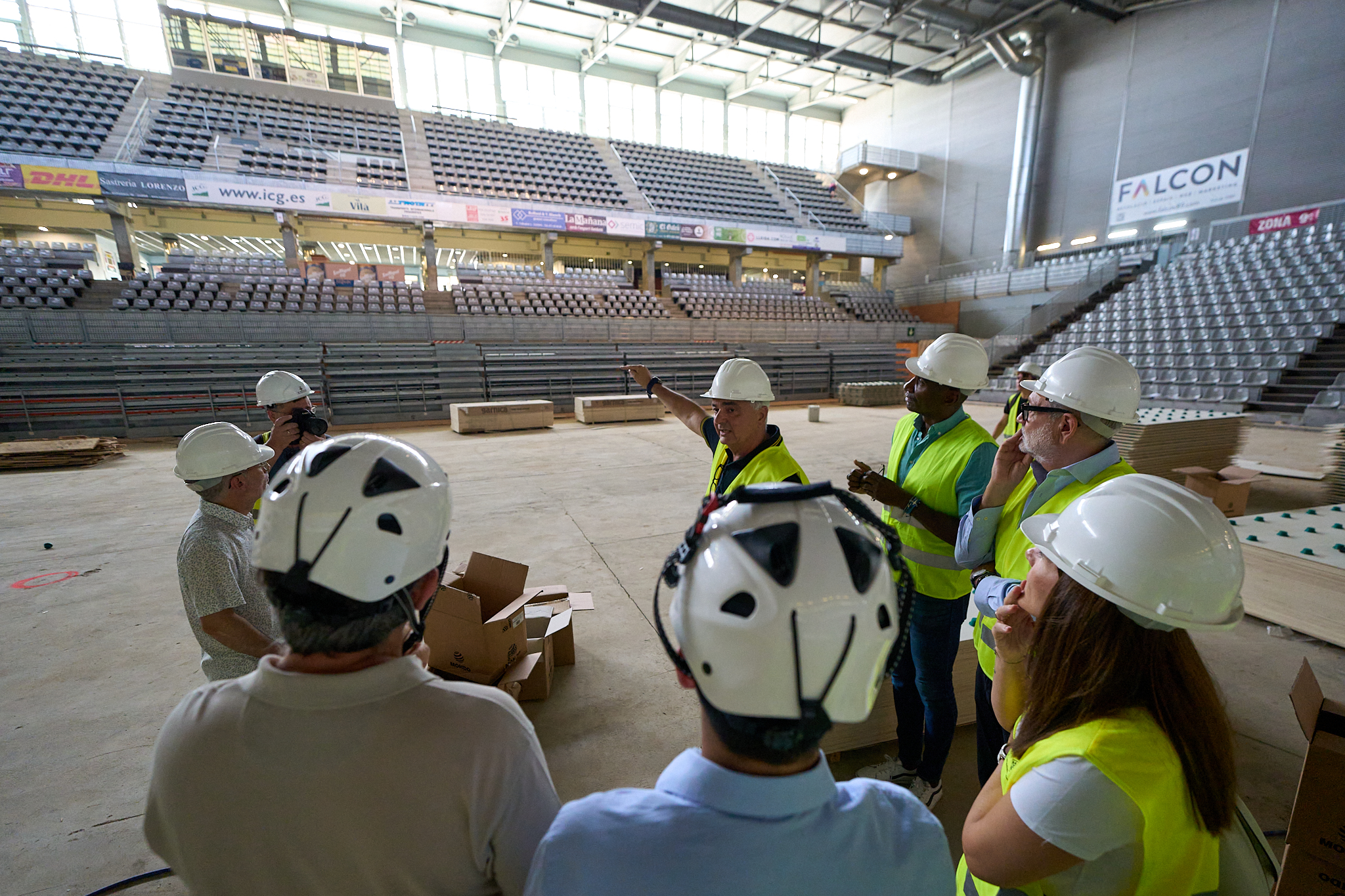 La empresa adjudicataria que está llevando a cabo las labores de renovación de la pista, Mondo Iberica SAU, ha retirado el parquet viejo que estaba bastante desgastado, y está montando el nuevo, con un acabado de madera de haya de última generación, flotando, con mejores prestaciones, siguiendo la normativa UNE y FIBA. La instalación incluye el marcado de la pista de juego, el perímetro, botellas y círculo central macizado, mantenimiento de las instalaciones bajo el parqué, y, en general, la adecuación necesaria para el uso de este equipamiento deportivo.