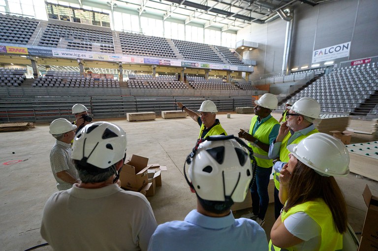 El paer en cap, Fèlix Larrosa, ha visitado las obras que están en marcha para sustituir el parqué por uno de última generación y para mejorar y acondicionar las instalaciones a la normativa, con una inversión de unos 400.000 euros
