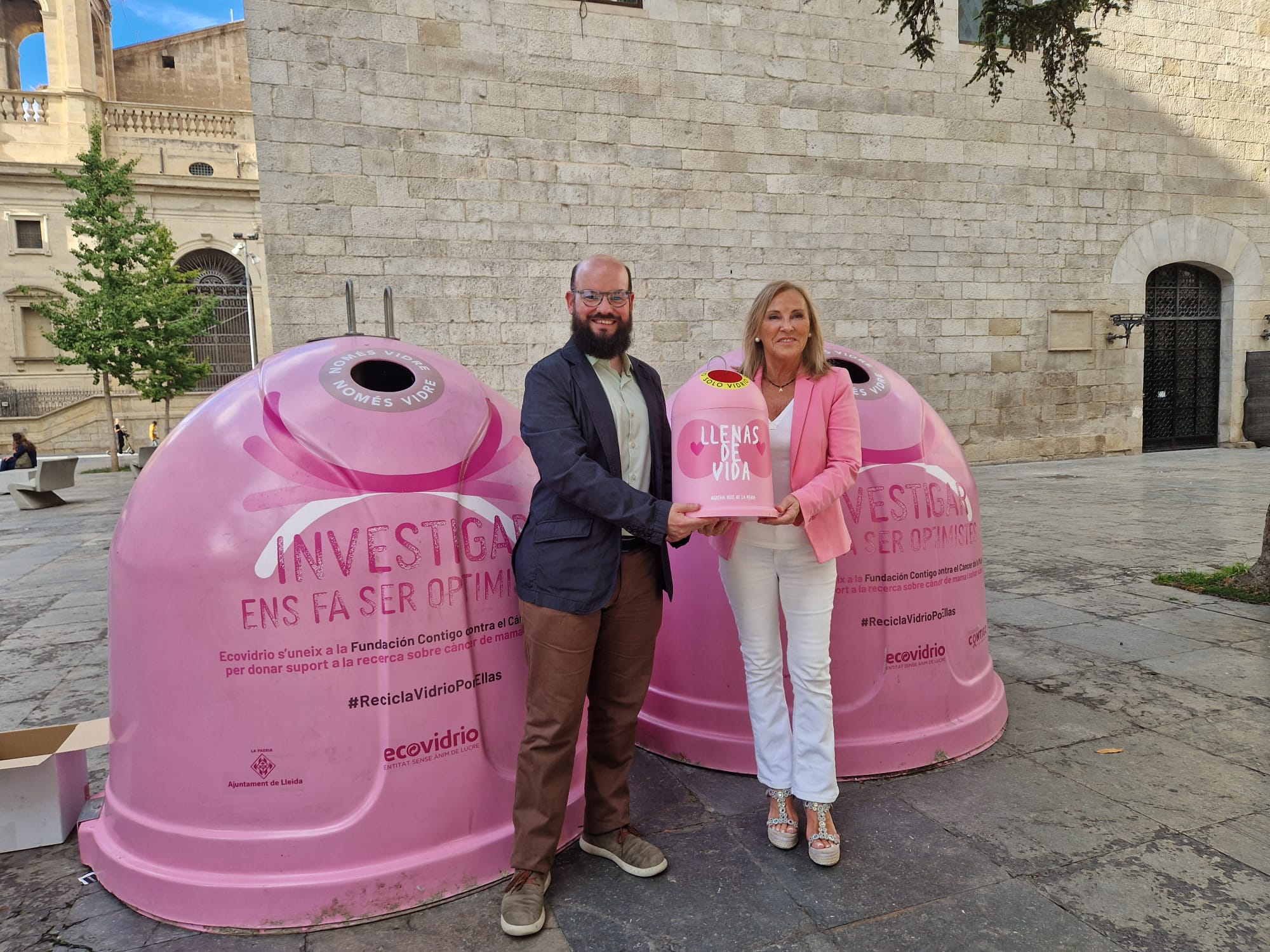 La ciudad de Lleida, con otras 140 ciudades de todo el territorio del Estado, se suma un año más a esta campaña que realiza ECOVIDRIO y la Fundación Contigo, con el objetivo de apoyar explícitamente la investigación contra el cáncer de mama a través de la sencilla acción de reciclar envases de vidrio. Además, la iniciativa solidaria también aprovecha para concienciar a la ciudadanía sobre la importancia del cuidado del medio ambiente a través del reciclaje.