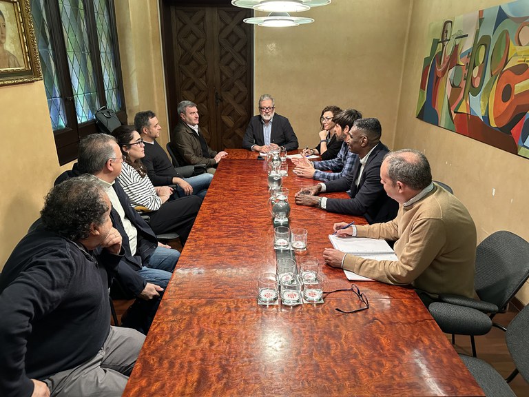 Este lunes el alcalde de Lleida, Fèlix Larrosa, acompañado del concejal de Deportes, Jackson Quiñónez, ha mantenido una reunión con la Junta Directiva del Lleida Lista Blava, encabezada por su presidente, Enric Duch.