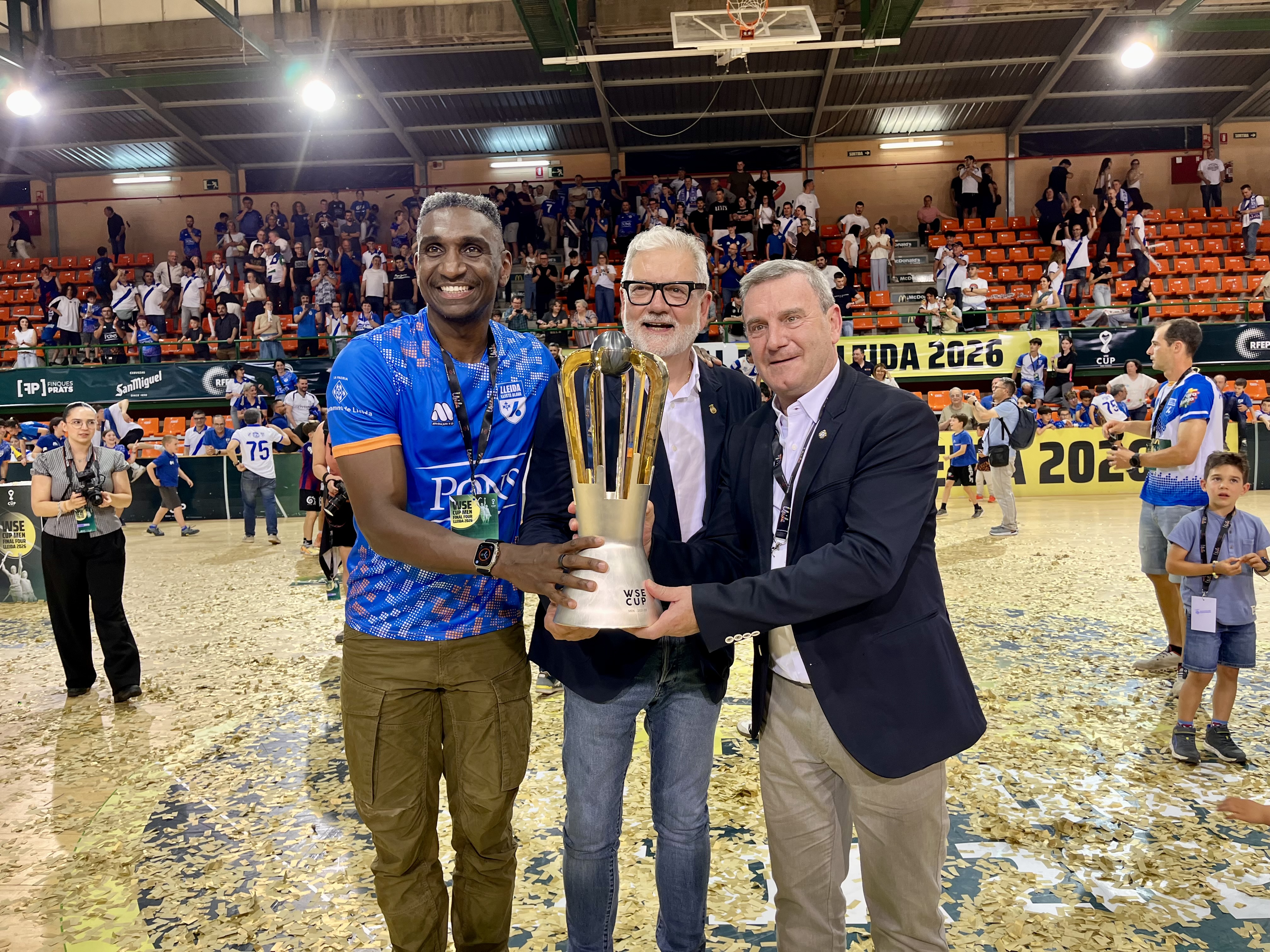 El alcalde de Lleida, Fèlix Larrosa, ha entregado la copa al capitán del equipo, Sergi Duch, y ha felicitado a jugadores, cuerpo técnico y afición por el título logrado, que ha calificado de "todo un orgullo para la ciudad". La Paeria ofrecerá un recibimiento institucional al conjunto leridano, cuya fecha se dará a conocer en los próximos días.