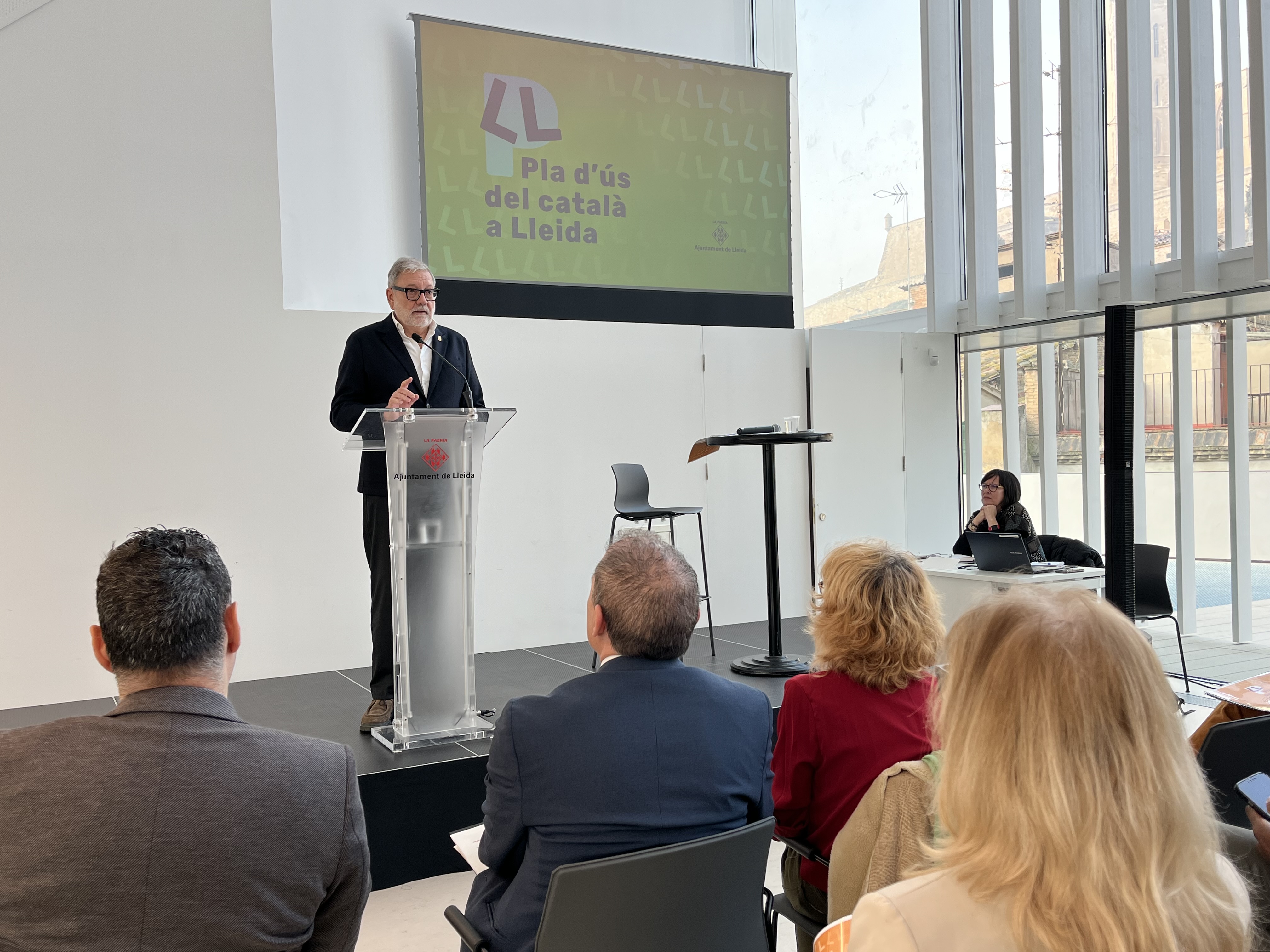 El Ayuntamiento de Lleida ha presentado hoy en el MORERA. Museo de Arte Moderno y Contemporáneo de Lleida el Plan Estratégico Transversal y Territorial de la Ciudad de Lleida de Fomento del Uso de la Lengua para la Igualdad de Oportunidades 2024-2028. El paer en cap, Fèlix Larrosa, ha destacado el liderazgo de la Paeria en el impulso del uso del catalán, de la mano de la conselleria de Política Lingüística, y ha pedido a la sociedad civil que se sume a este "reto enorme", poniéndose a disposición de todos para trabajar conjuntamente. En la presentación del plan, que ha reunido a autoridades, representantes de entidades de la ciudad y de diferentes organizaciones y sectores profesionales, han acompañado al alcalde la concejala de Cultura y Promoción de la Ciudad, Pilar Bosch, y la Comisionada por la Lengua de la Paeria, Paquita Sanvicén.