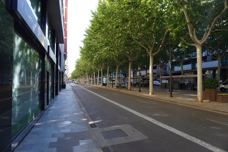 Por un lado, se aborda la ampliación de la acera del lado del Museo Morera y la Diputación, que pasará de 2,8 a 5 metros de ancho, duplicando casi la superficie peatonal, que pasa de 1.250 a 2.400 metros cuadrados. También se plantarán 39 árboles, se instalarán 24 columnas con 48 luminarias y se renovará la red de agua potable y el mobiliario urbano.