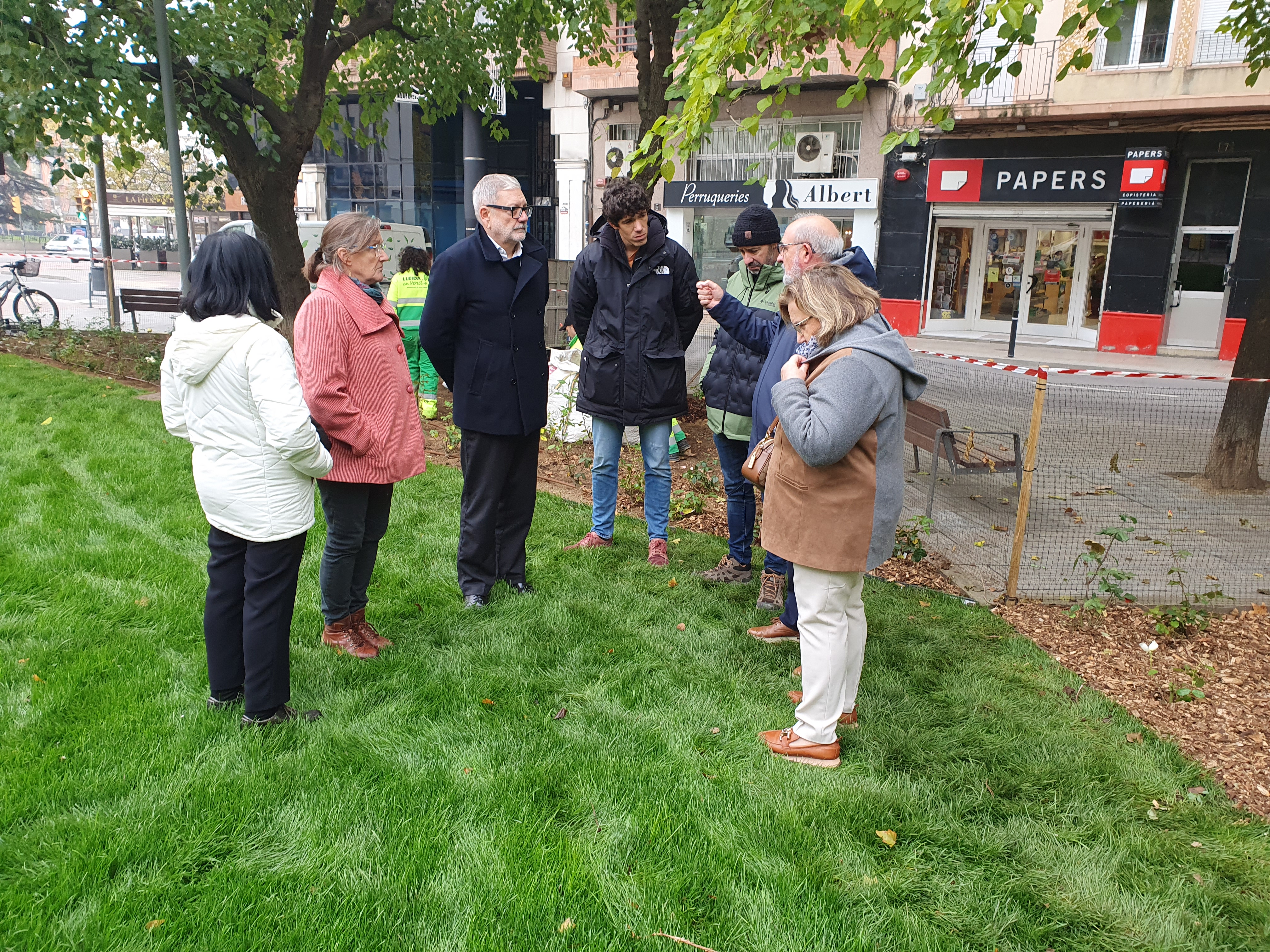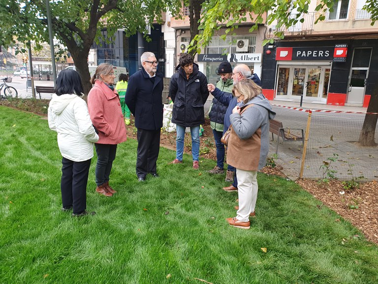 Larrosa, supervisó hoy estas tareas, acompañado de técnicos municipales y de representantes del vecindario, y explicó que también se saneará el espacio ajardinado también con rosales en torno a la estatua de Pau Casals.