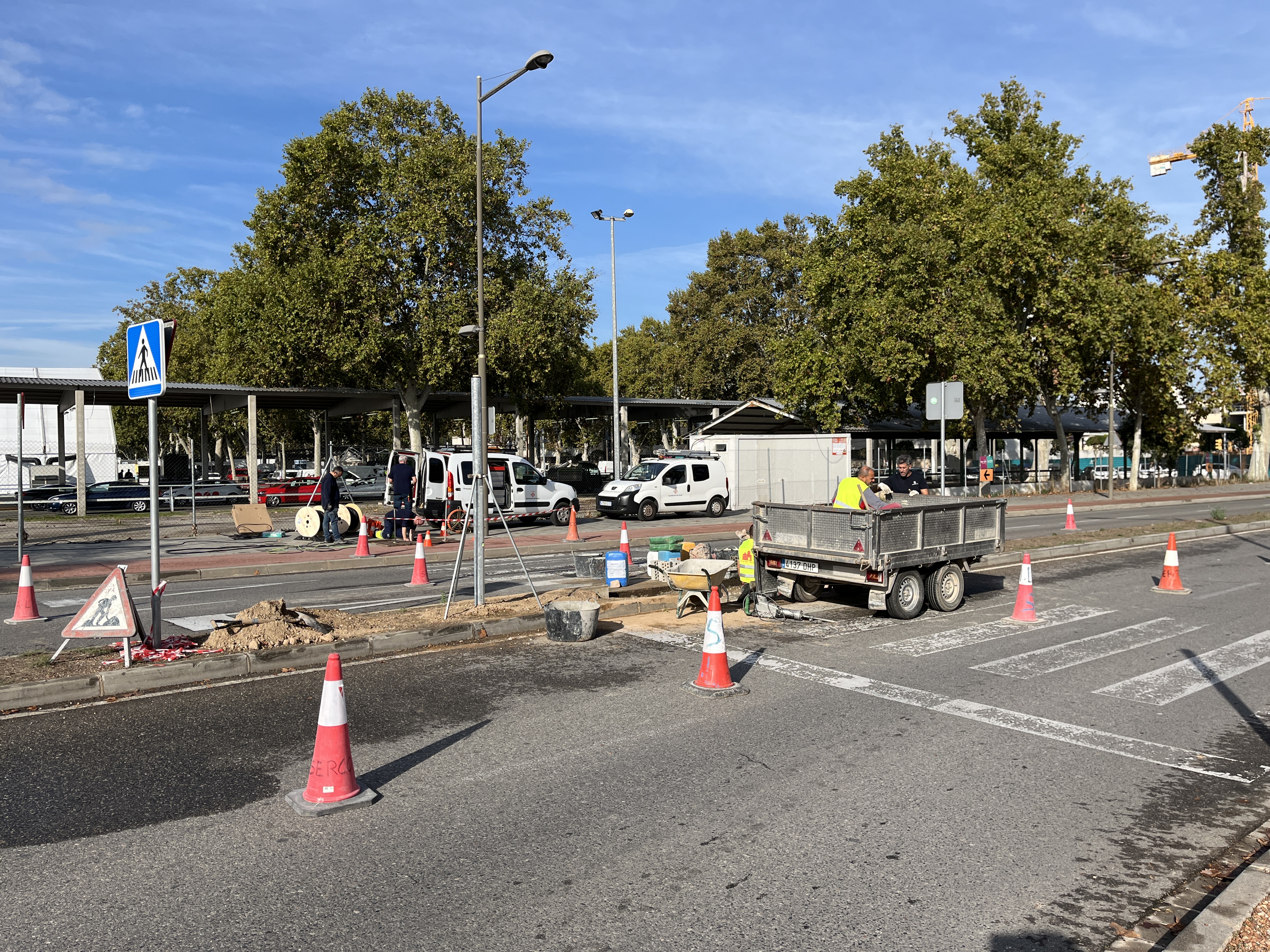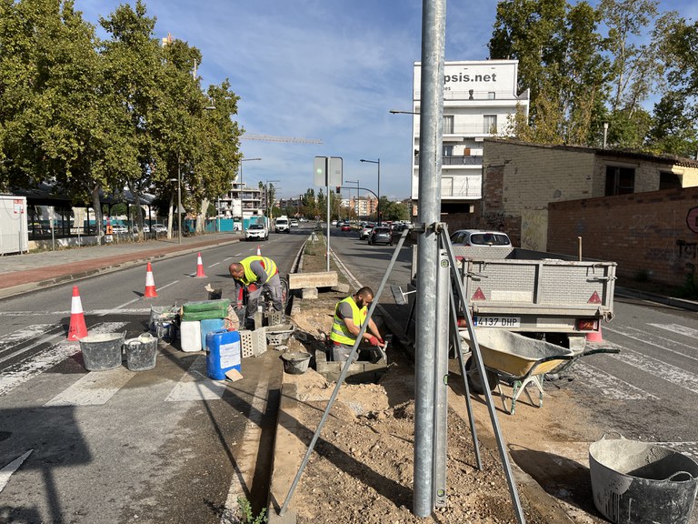 Operarios de las brigadas municipales están llevando a cabo obras en el cruce de la avenida Victoriano Muñoz desde donde se accede al recinto de Fira de Lleida, para instalar semáforos para facilitar el paso de los peatones y mejorar la seguridad vial.
