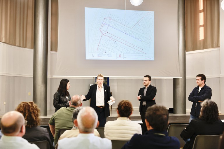La teniente de alcalde Begoña Iglesias ha presentado hoy el proyecto al vecindario, acompañada del alcalde pedáneo, Iván Fernández, y de la portavoz del grupo de ERC, Jordina Freixanet