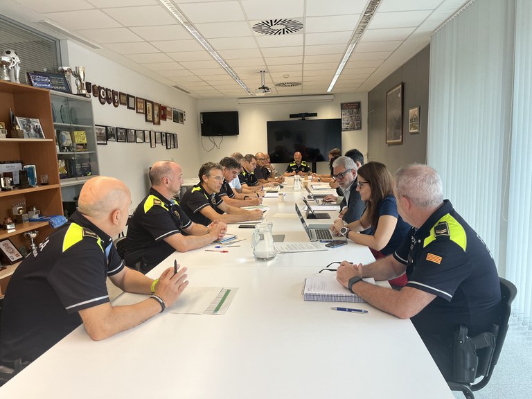 Reunión periódica del alcalde, Fèlix Larrosa, con los mandos de la Guardia Urbana para explicar el dispositivo de seguretat para el Abierto del Centro Histórico que se celebra del 19 al 21 de septiembre