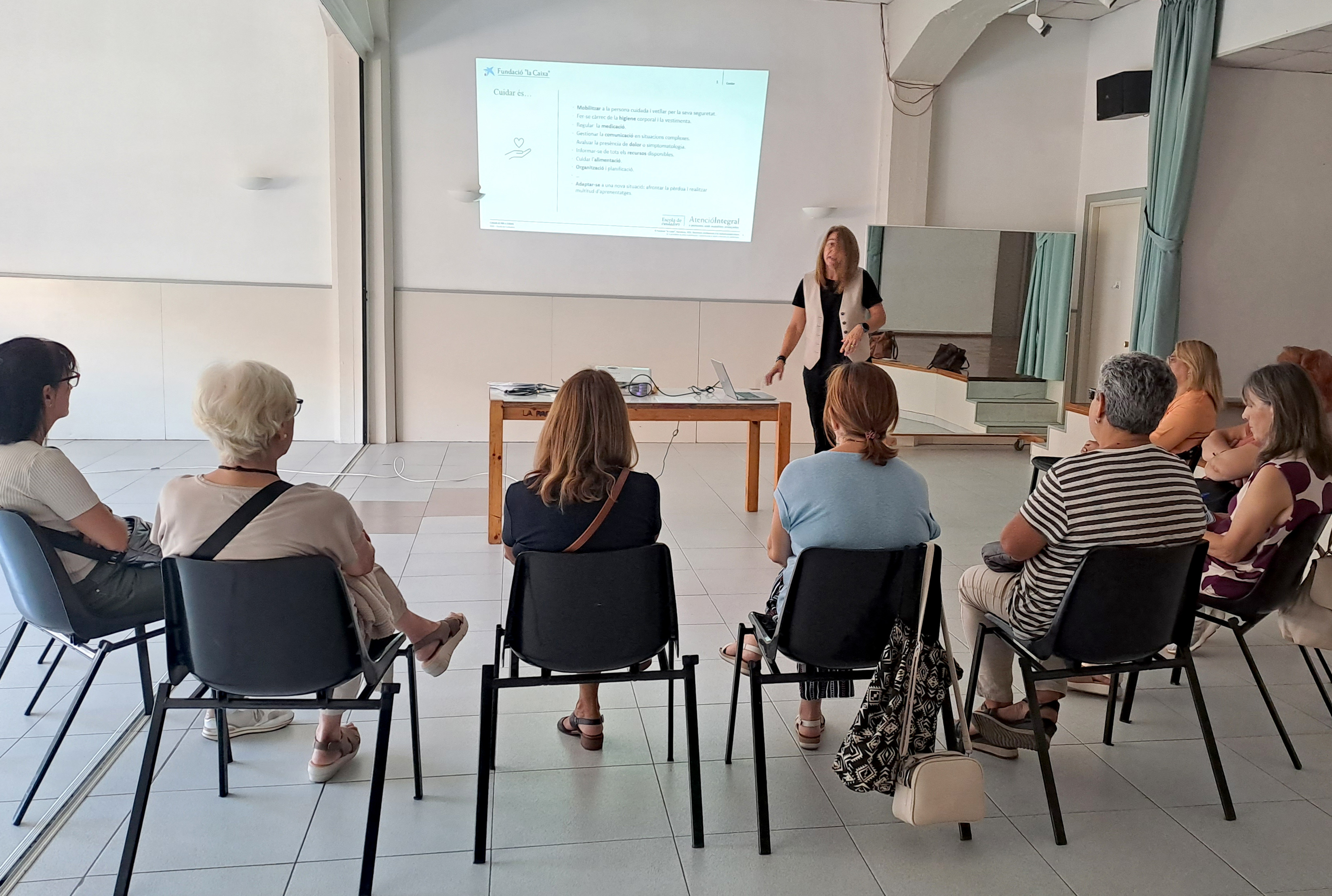 Este 2024, se han realizado tres talleres dentro del proyecto Cuidem-nos. El primero ha sido de formación para personas no profesionales, que se hace de forma coordinada con la Fundación la Caixa. Ha contado con 22 participantes. El segundo es de arteterapia, para desarrollar y valorar aspectos personales a través del arte, con 8 asistentes. Y el tercero, es un taller de mindfulness, para reducir el estrés y aprender técnicas de relajación. Se han programado tres ediciones, en las que han tomado parte una veintena de personas por edición. Debe remarcarse que mayoritariamente, en más de un 90% de los casos, toman parte mujeres.