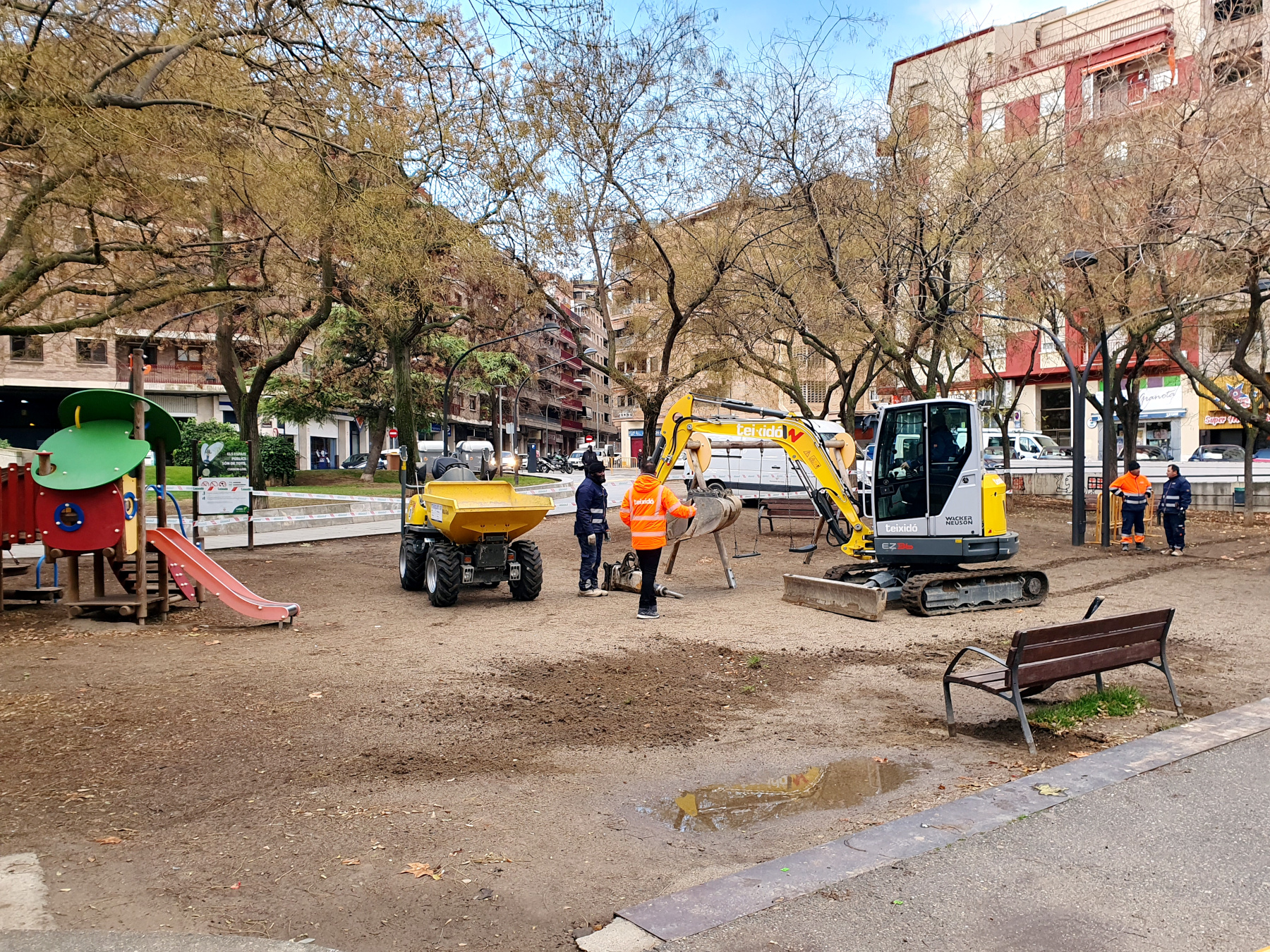 El Ayuntamiento de Lleida ha iniciado las obras de mejora del parque infantil de la plaza del Clot de les Granotes, así como actuaciones de impermeabilización de un muro y un nuevo drenaje. También se mejorará el muro de acceso al parque que hace de banco y se encuentra en mal estado.
