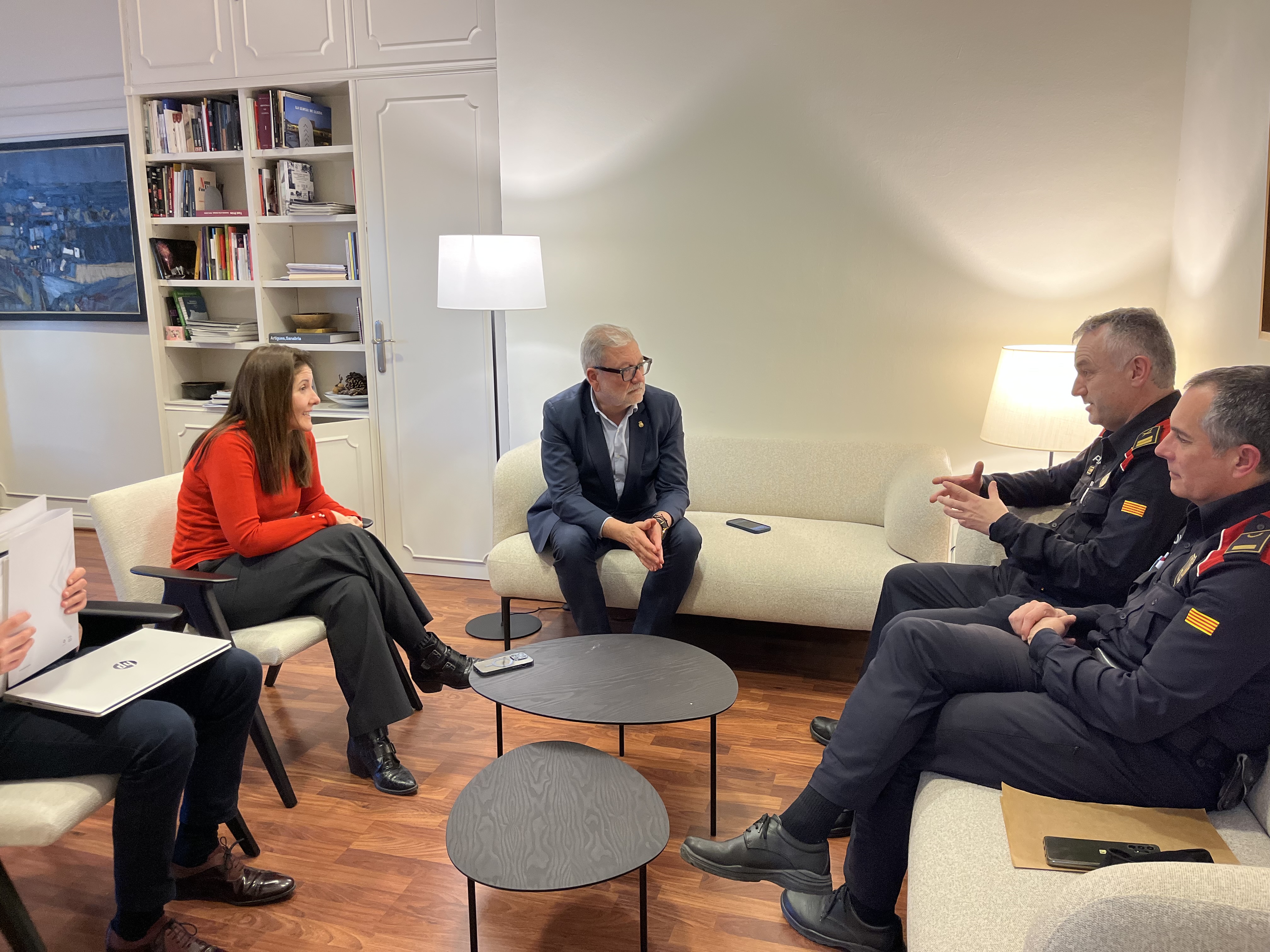 Reunión del alcalde de Lleida, Fèlix Larrosa, con el comisario jefe de los Mossos d'Esquadra de la Región Policial de Ponent, Josep Codina, quien le ha trasladado que se han detenido a tres personas como presuntas autoras de la agresión a una vecina de la plaza Josep Solans y un mozo fuera de servicio en la avenida.