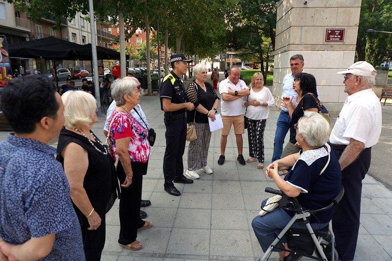 La alcaldesa accidental, Carme Valls, ha visitado hoy el Clot de les Granotes para mantener un encuentro con representantes vecinales del barrio y explicarles las acciones que está llevando a cabo el gobierno municipal y la Guardia Urbana para garantizar la seguridad y la tranquilidad de los residentes en la zona.