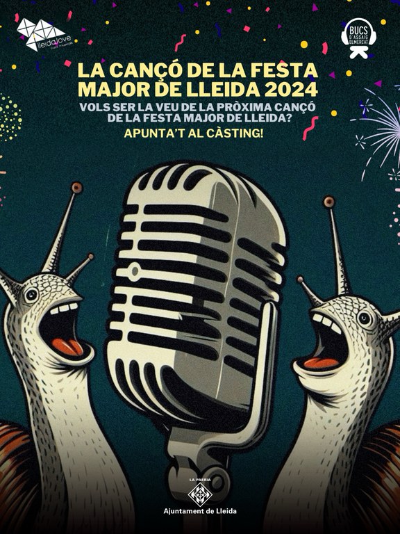 El departamento de Juventud del Ayuntamiento de Lleida, mediante los Bucs de Ensayo El Mercat, organiza un casting para seleccionar la voz de la canción oficial de la próxima Fiesta Mayor de Lleida. Pueden participar personas de entre 16 y 30 años residentes en esta ciudad.