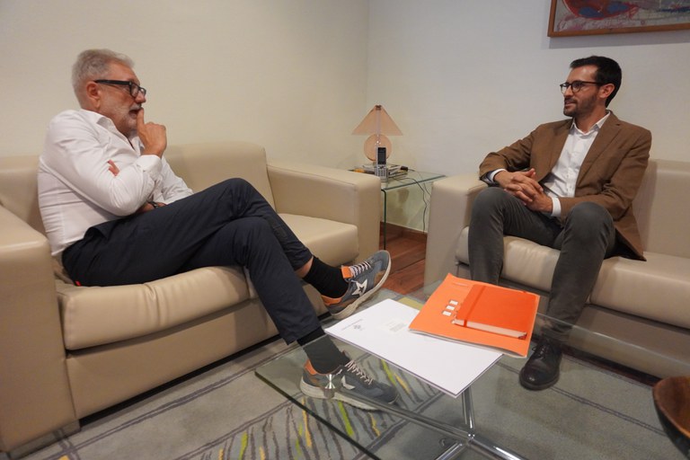 El paer en cap, Fèlix Larrosa, ha recibido en la Paeria al nuevo presidente del Fondo Catalán de Cooperación, Jordi Cuadras, por buscar vías de colaboración en la cooperación descentralizada