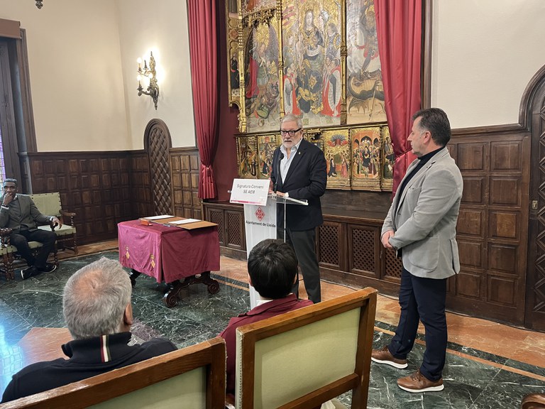 Más allá del convenio, el alcalde se ha referido a actuaciones futuras, como la mejora de los vestuarios y de la iluminación, y ha explicado que ya se está trabajando conjuntamente con el club para planificar el futuro, en el marco del Plan de Mejora Urbana que se ejecutará en el barrio y que “resolverá las comunicaciones con la ciudad, los servicios de aparcamiento y permitirá poner en marcha espacio deportivo de enorme calidad en la ciudad de Lleida”.