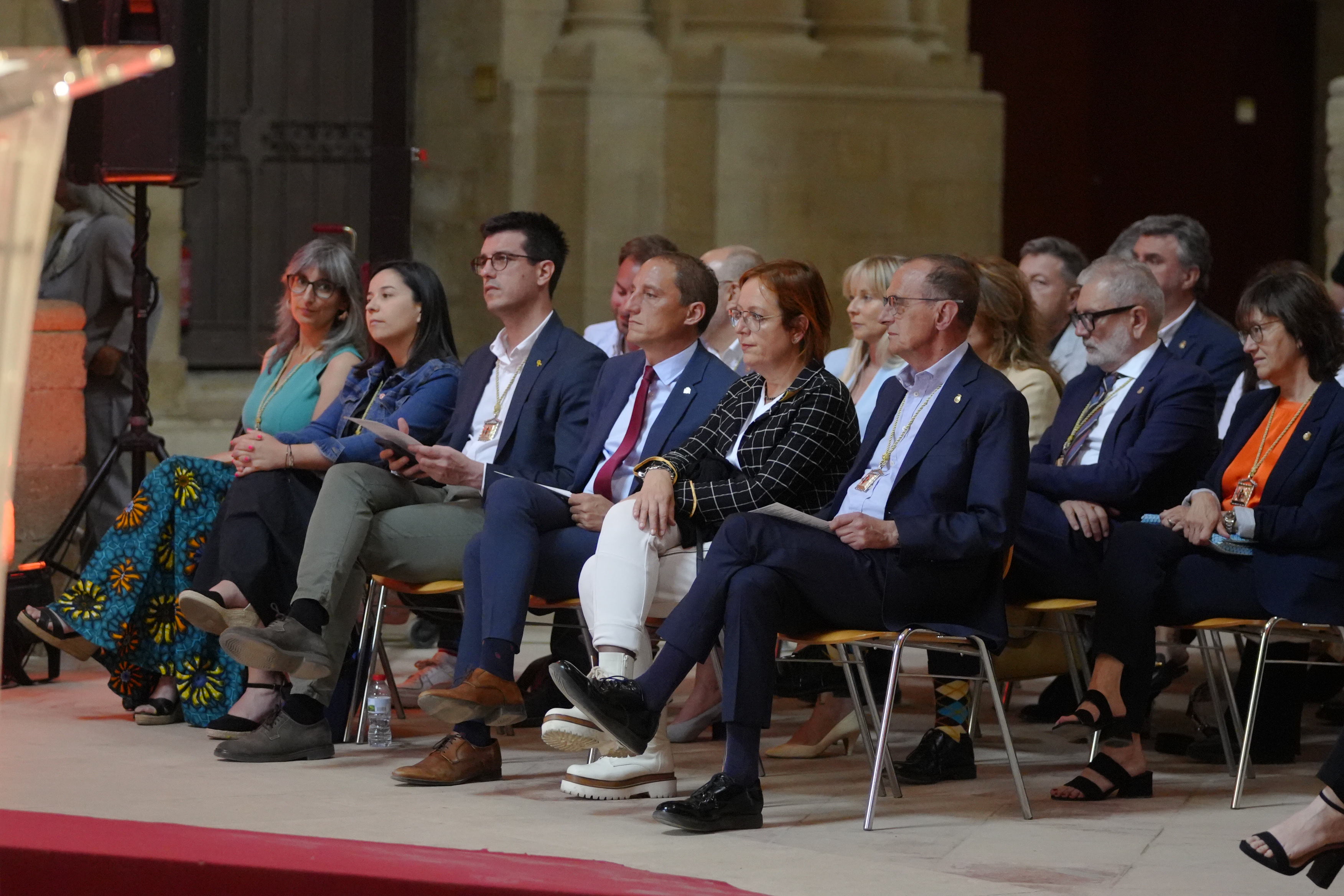 El alcalde de Lleida, Miquel Pueyo, acompañado de una nutrida representación de la Corporación Municipal y autoridades de todos los ámbitos, miembros del consejo de ciudad y de los consejos de zona y también representantes de los sindicatos, presidió hoy el acto de entrega de placas y medallas de La Paeria que reconocen trayectorias personales y también colectivas relacionadas con la ciudad de Lleida. Asistieron a la entrega de los galardones los tenientes de alcalde Toni Postius, Jordina Freixanet, Sandra Castro y Montse Pifarré; y los concejales y concejalas Joan Ramon Castro, Jaume Rutllant, Maryama Sall, David Melé e Ignasi Amor. El acto también ha contado con la presencia del jefe de la oposición, Fèlix Larrosa, de los representantes socialistas Carme Valls, Cristina Morón y Joan Queralt; así como de la concejala del grupo popular, Maria Antònia Maller y la concejala de Ciudadanos, Maria Burrel. Asimismo, también asistieron la delegada del Gobierno en Lleida, Montse Bergés, y el subdelegado del gobierno en Lleida, José Crespin.