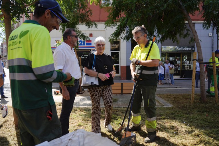La concejala de barrio, la teniente de alcalde Carme Valls, ha visitado esta mañana las labores de las brigadas y las empresas concesionarias de los diferentes servicios en el Clot, donde se ha encontrado también la presidenta de la Asociación de Vecinos, Montse Salvatella, y otras vecinas, a fin de escuchar y atender sus peticiones.