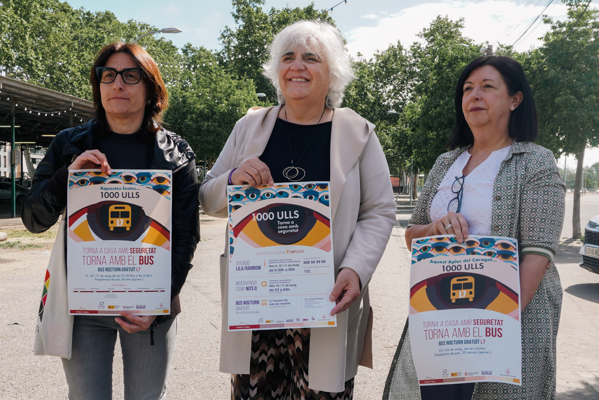 El Ayuntamiento de Lleida volverá a activar el Dispositivo Integral de Seguridad para la prevención de las violencias machistas y LGTBIFóbicas en el ocio nocturno en el marco de la campaña "1000 Ojos" para garantizar que la Fiesta Mayor de Lleida sea un espacio festivo marcado por el civismo y por la seguridad para todas las personas. El amplio dispositivo municipal consta de diferentes equipos de Punt Lila-Rainbow y Nits Q, así como un autobús nocturno gratuito de la línea L7, las noches del 9, 10 y 11 de mayo. El dispositivo, que ha presentado esta mañana la teniente de alcalde y responsable de la Concejalía de Políticas Feministas, Carme Valls, acompañada de la Jefa de la Unidad Técnica de Políticas de Igualdad, Isabel Hornos, y la Responsable del Área Prevención e Intervención en Adiciones, Marta Escolà, se repetirá las noches del 23 y 24 de mayo por el Aplec del Caragol.