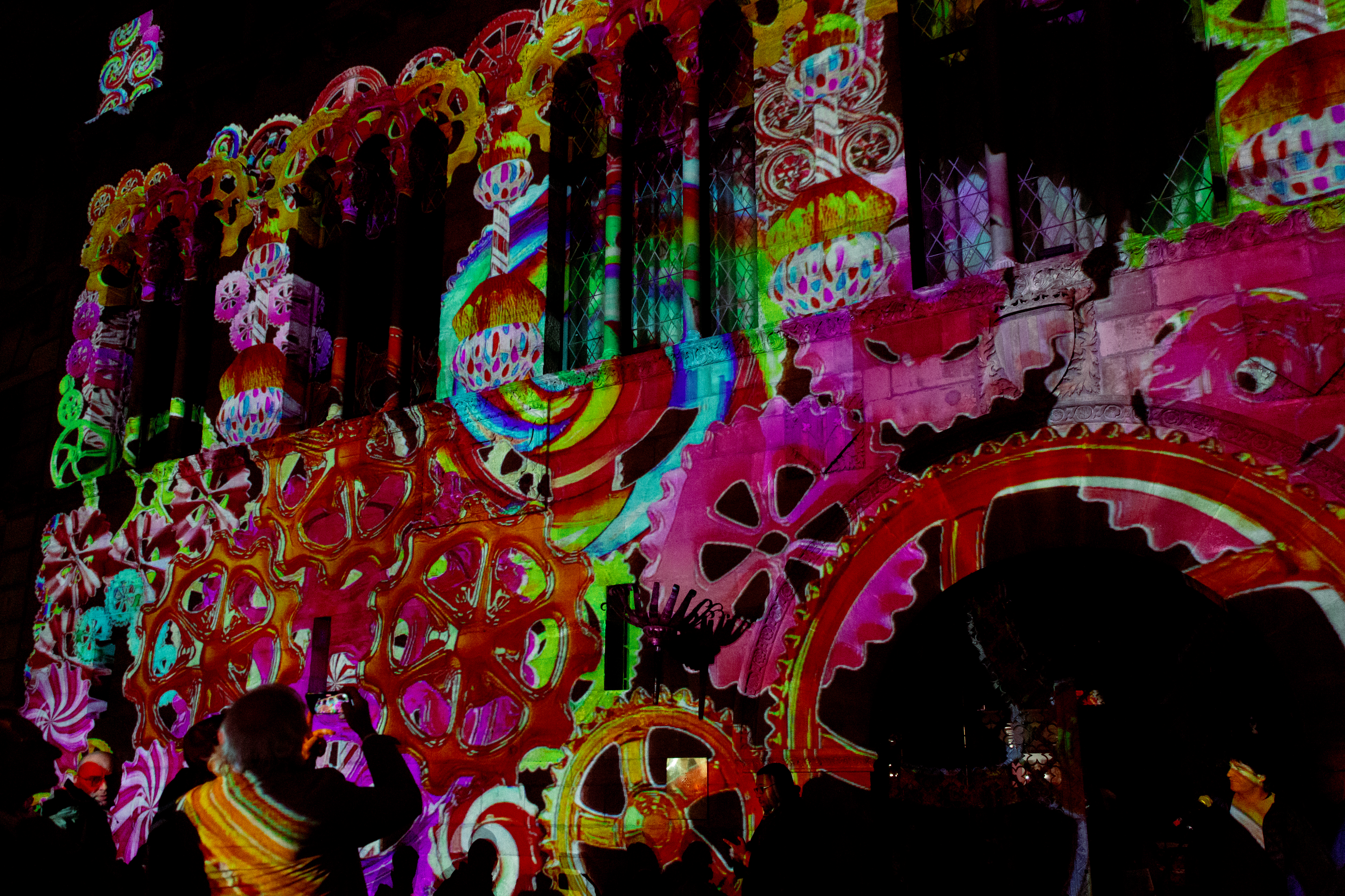 En la plaza Paeria, se han apagado las luces unos minutos antes de las seis y media para presenciar el estreno de un máping con motivos navideños de siete minutos de duración que se ha proyectado en la fachada del Ayuntamiento. El espectáculo, elaborado por la empresa Monsuton, también ha podido verse en un segundo pase a las 19.30 horas.
