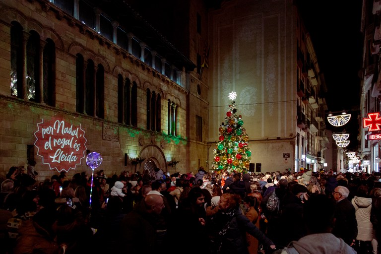 Lleida ha dado hoy la bienvenida a la Navidad con el tradicional encendido de la iluminación navideña en los diferentes barrios y zonas comerciales de la ciudad, que da inicio a todo el programa de actividades puesto en marcha por estas fechas por la Paeria bajo el lema "En Navidad, el regalo es Lleida".