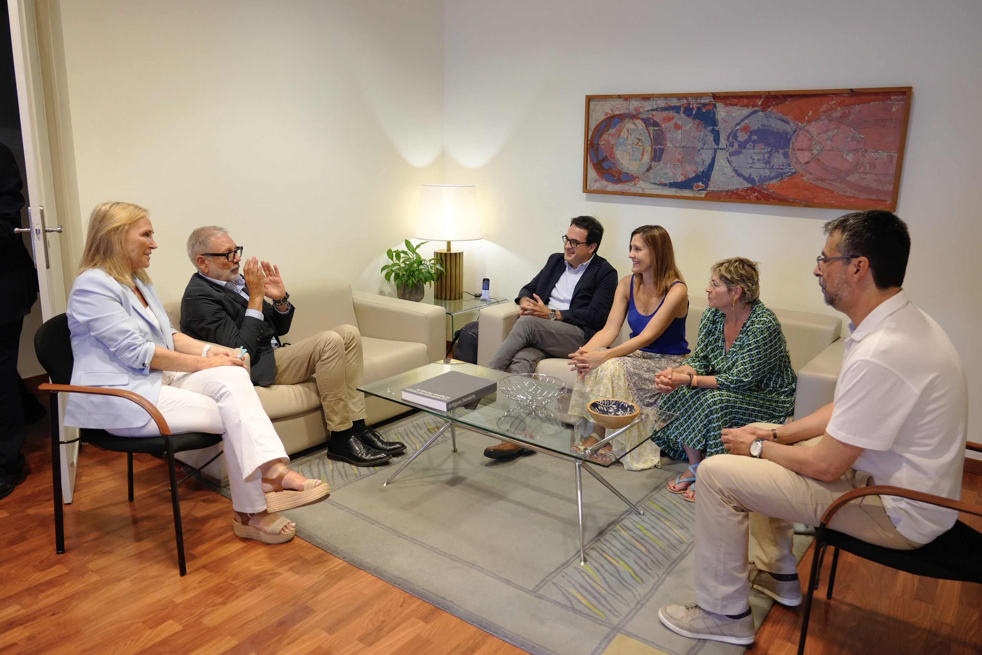 El alcalde de Lleida, Fèlix Larrosa, acompañado de la concejala de Personas Mayores, Salud y Consumo, Anna Miranda, han recibido esta tarde en el Palau de la Paeria el Presidente de la Sociedad Catalana de Medicina Familiar y Comunitaria (CAMFIC), Antoni Sisó , y otros miembros de la entidad como Mònica Solanes, Eugeni Paredes y Gisela Galindo, entre otros.