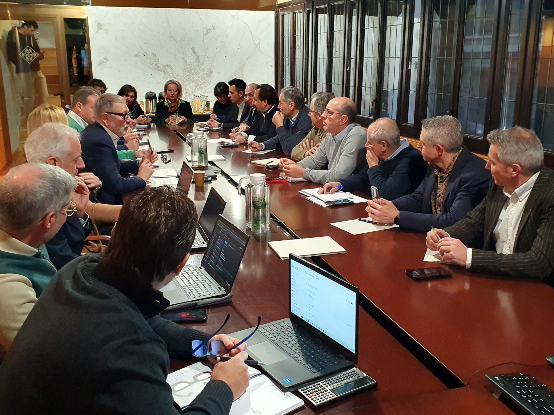 El encuentro ha contado con la participación de representantes de los colectivos de regantes, asociaciones empresariales y colegios oficiales, mientras que por parte municipal, también se han sumado la primera teniente de alcalde y concejala de Agenda Urbana y Espacio Agrario, Begoña Iglesias, y personal técnico de los distintos departamentos implicados.