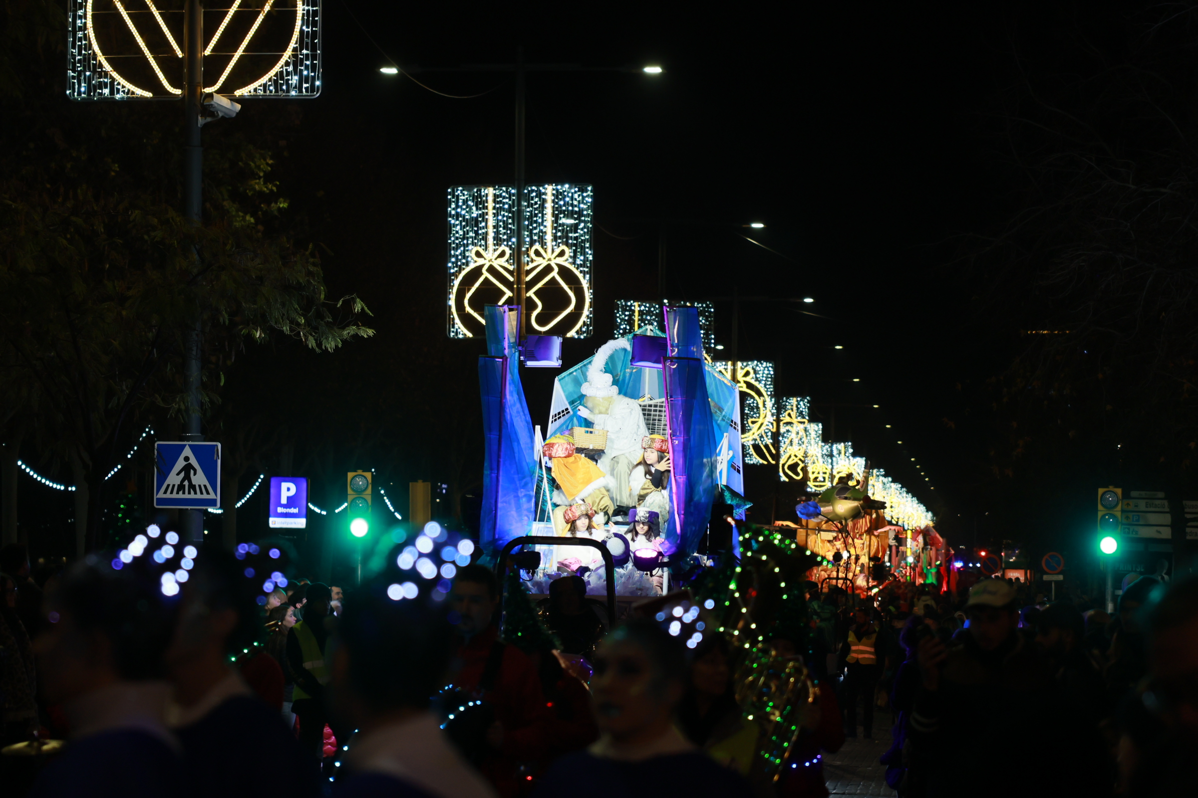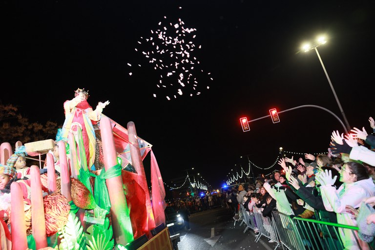 Melchor, Gaspar y Baltasar han recorrido el centro de Lleida en un gran espectáculo itinerante de más de 2 kilómetros. Han desfilado 12 carrozas acompañadas por más de un centenar de artistas, 60 niños de la ciudad y los Castellers de Lleida, que han ayudado a los Reyes a distribuir más de dos toneladas de caramelos libres de alérgenos. Una de las novedades de este año han sido los cuerpos de danza de varias escuelas de la ciudad que se han sumado a la comitiva real y han brillado junto a las compañías de artes escénicas y de animación, de músicos y de elementos de cultura popular, en la gran muestra de talento artístico de Lleida que es la Cabalgata.