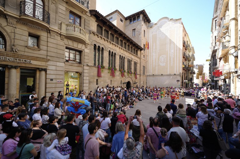 Lleida celebra el gran día grande de la Fiesta Mayor con motivo del día del patrón San Anastasio, dedicando gran parte de su programación festiva a la cultura popular. Durante la jornada matinal, la plaza Sant Joan ha acogido el acto más lucido: el baile de Sant Anastasi donde todos los grupos y agrupaciones que forman parte del cortejo festivo han hecho una demostración, a la que han asistido cientos de personas que no han querido perder este imaginario de la ciudad.