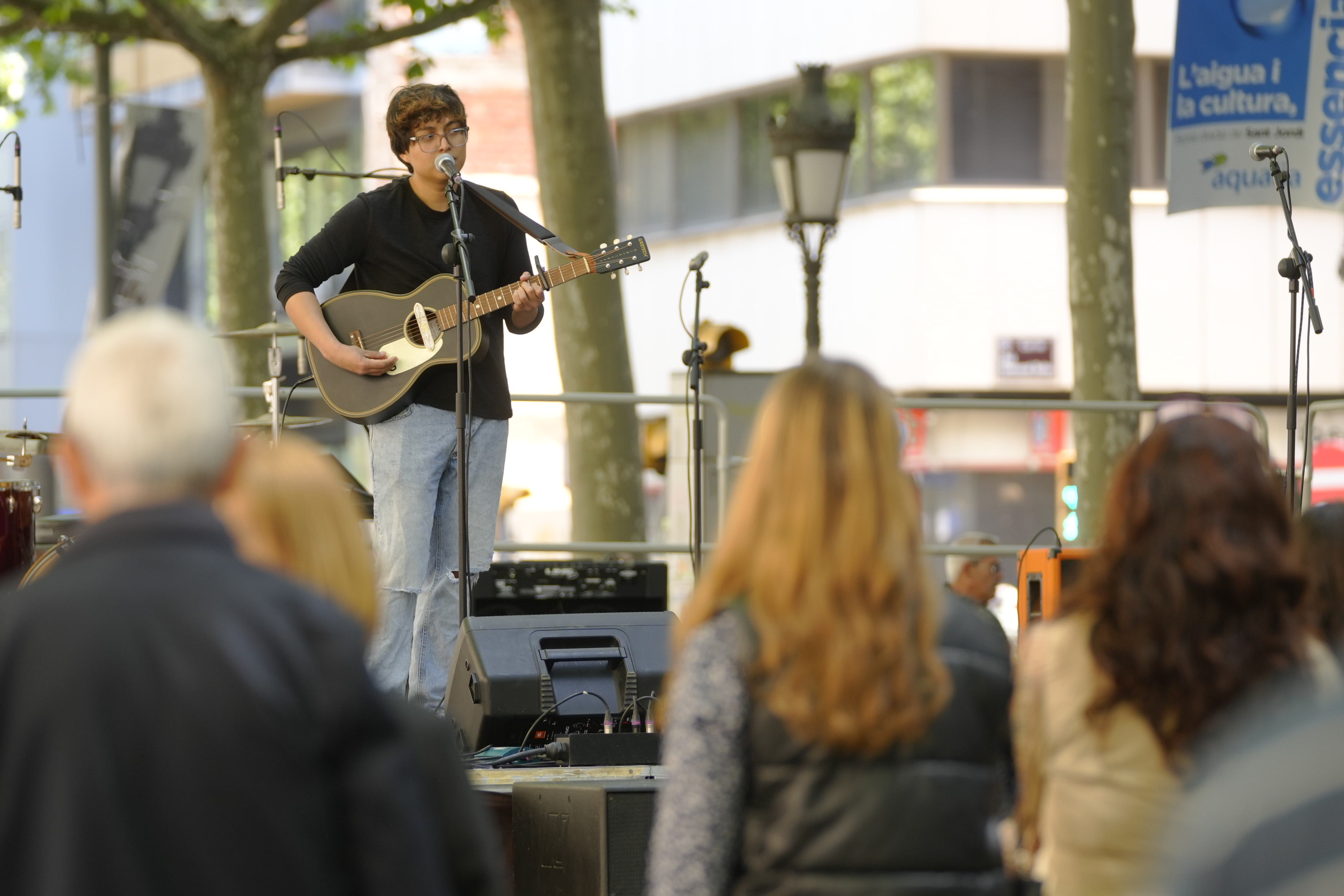 El escenario de la rambla de Ferran ha acogido las actuaciones de los grupos jóvenes de los Buques de Ensayo de Lleida: Andreu Songs, Jeanra, Line 4, Abril Pinyol, Eleene. También ha habido sardanas con la Bellpuig Cobla y, a la hora del vermut, los establecimientos de la rambla han obsequiado a sus clientes con una cata de poesía.