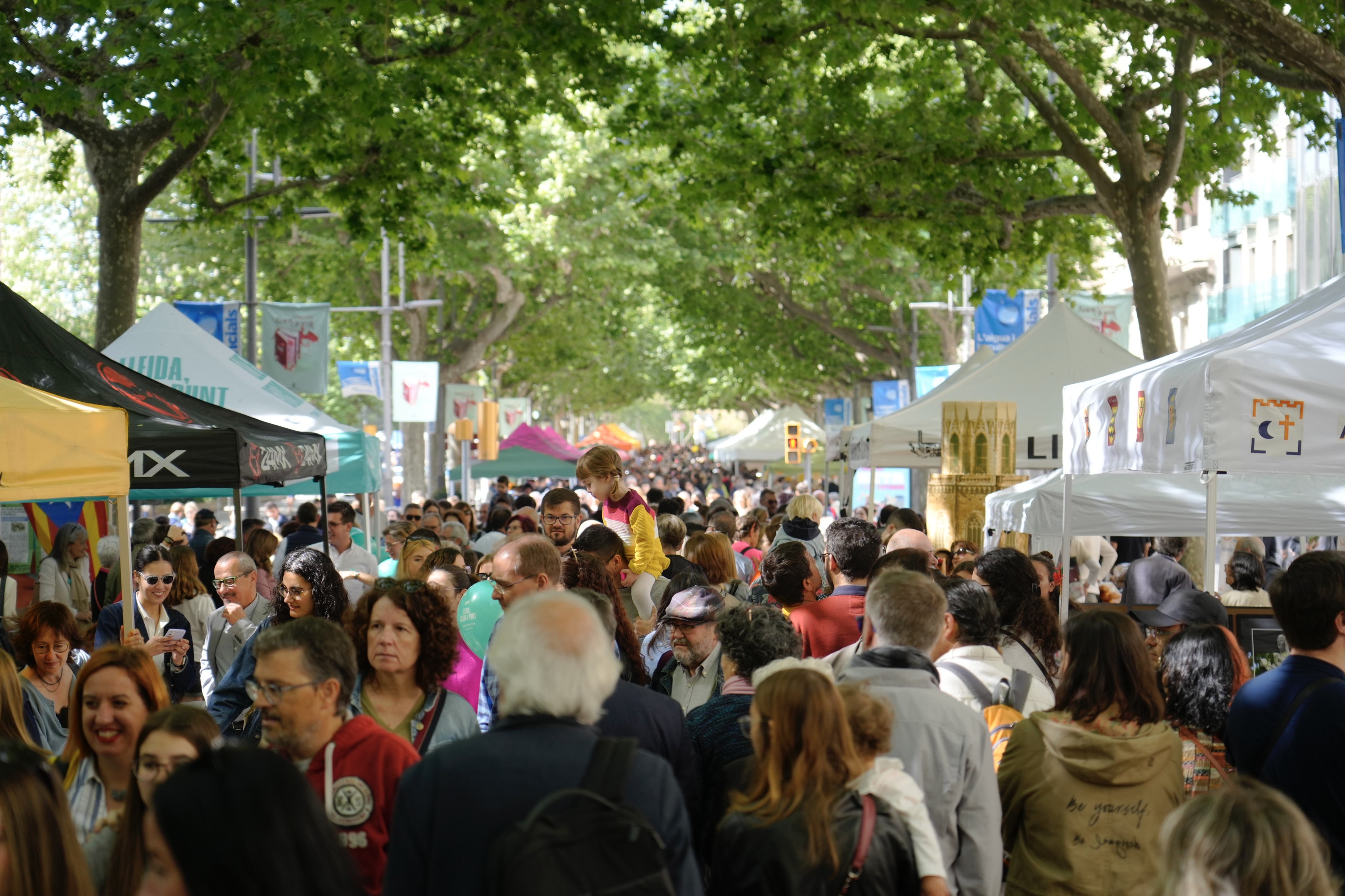 Entre esta y otras zonas del resto de Lleida, se han instalado alrededor de 150 puntos de venta de libros y de rosas así como de materiales y merchandising de decenas de entidades y colectivos que este día también salen al calle. Las paradas permanecerán abiertas hasta las 21 h.