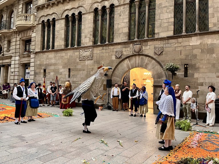 Lleida celebra durante todo el día las XXXI Fiestas Tradicionales de Corpus con el Eje Comercial repleto de alfombras de flores y adornos primaverales y la tradicional salida desde el palacio de la Paeria del Águila de Lleida, el León de la ciudad y los Caballitos del Patronato de Corpus. Una vez en la plaza, el bestiario popular ha hecho una demostración de bailes de respeto tradicionales con el acompañamiento musical de los Puputs de Montoliu.