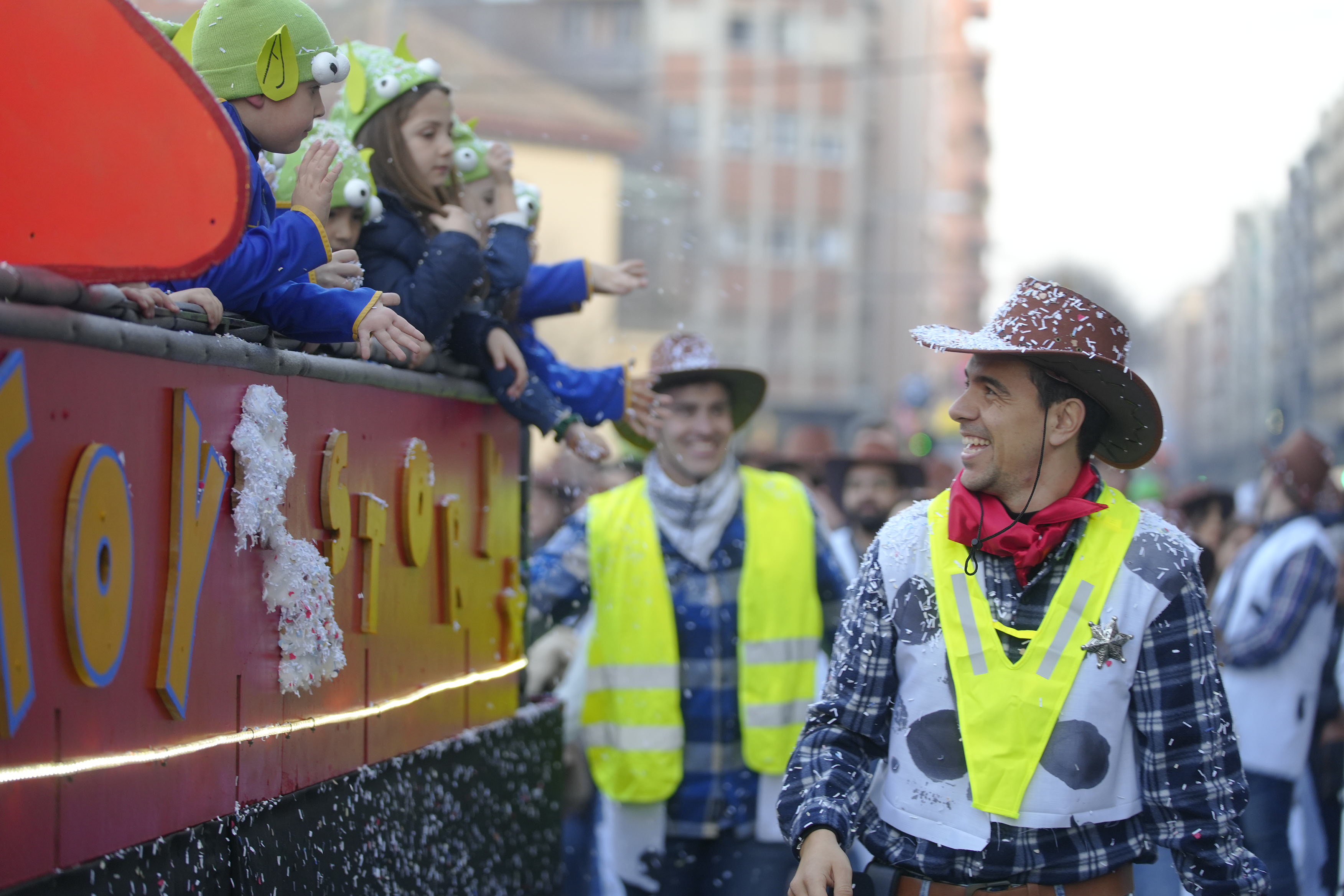 La Gran Rúa de Carnaval de este año ha contado con 34 carrozas y 12 comparsas que han salido de los Camps Elisis, en un recorrido que ha traído música, luces, disfraces y alegría por las calles de la ciudad