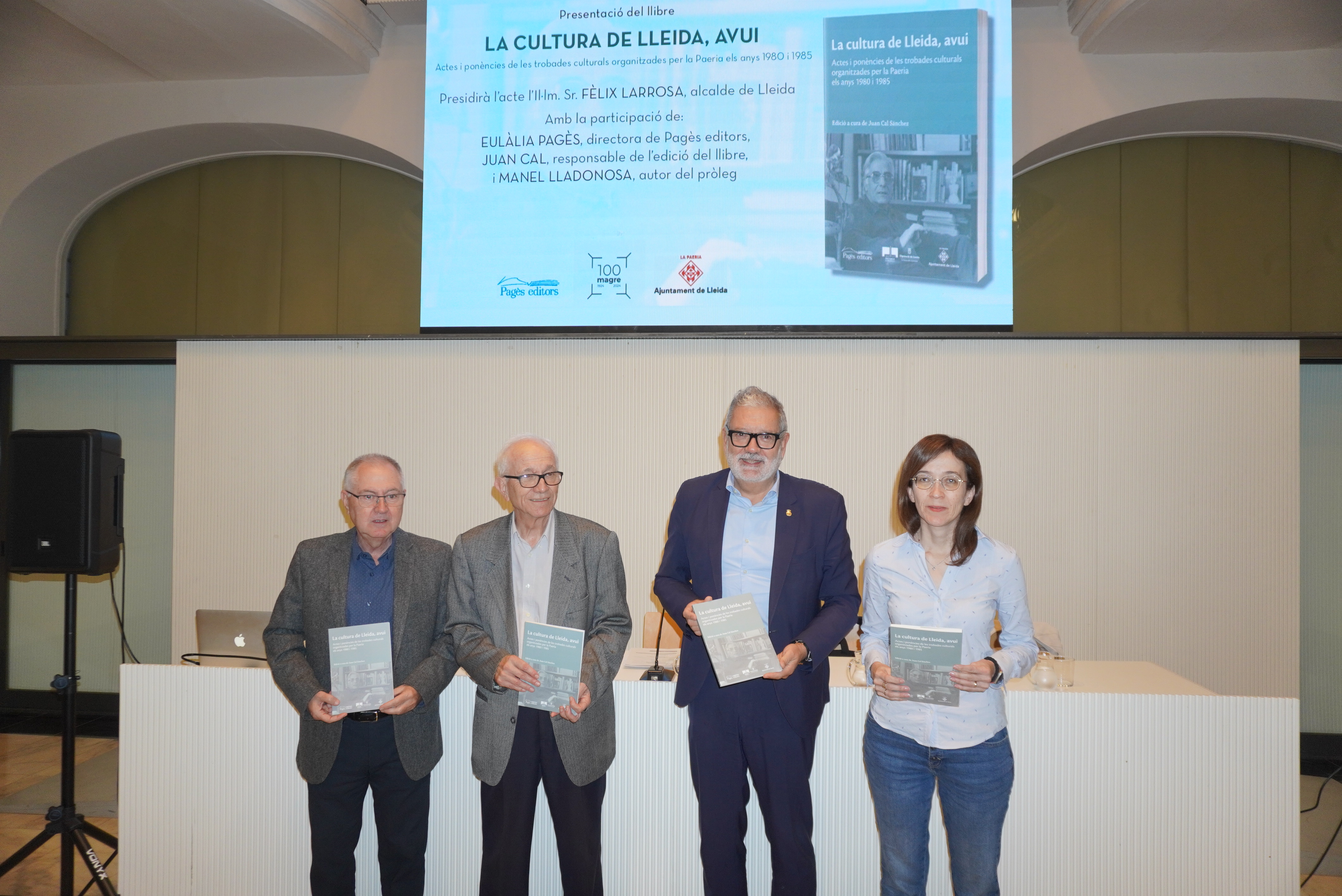 El alcalde de Lleida, Fèlix Larrosa ha presidido hoy la presentación de “La cultura de Lleida, hoy. Actas y comunicaciones de los encuentros culturales de 1980 y 1985”, un volumen que recoge material correspondiente a los encuentros culturales que, bajo el título “La Cultura de Lleida, hoy” se celebraron en Lleida entre los años 1980 y 1985, organizadas por el Ayuntamiento de Lleida. En el acto, que se ha realizado en la sala Alfred Perenya, también ha participado el responsable de la edición del libro y comisario del Año Magre, Juan Cal; la directora de Pagès Editors, Eulàlia Pagès; y el autor del prólogo, el catedrático Manel Lladonosa, quien impulsó las jornadas junto a Josep Varela. También ha asistido en la presentación la concejala de Cultura, Pilar Bosch. El libro se enmarca en el Año Magre , dedicado a recordar el centenario del nacimiento de esta figura clave para la cultura leridana.