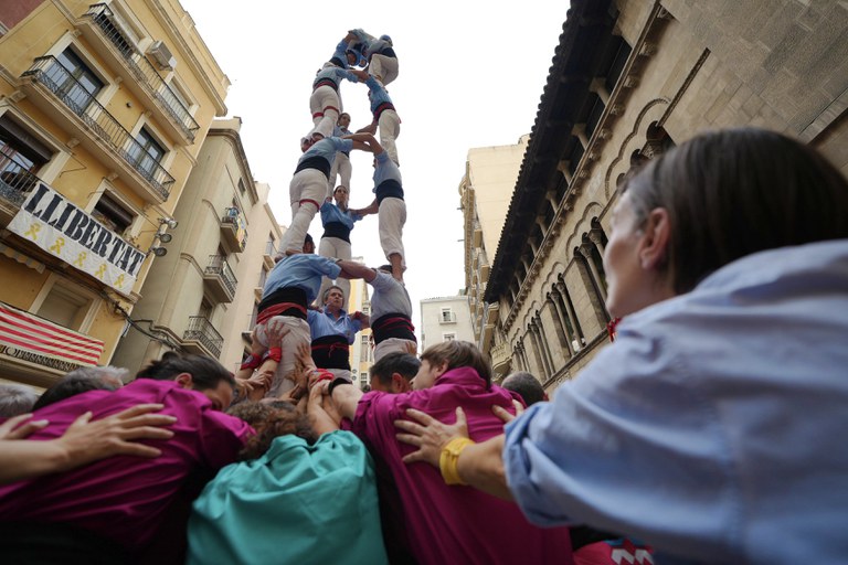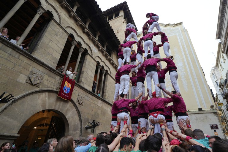 La colla leridana ha protagonizado hoy en la plaza Paeria una muy meritoria actuación con tres castells de 7, acompañada por los Castellers de la Sagrada Família i los del Poble Sec