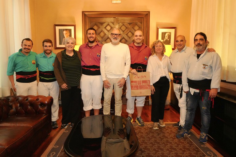 El paer jefe, Fèlix Larrosa, ha presenciado la actuación desde el balcón del Ayuntamiento, donde ha estado acompañado por la concejala de Cultura, Pilar Bosch y la teniente de alcalde Carme Valls. Además de los Castellers de Lleida, también han participado en la Diada los Castellers de la Sagrada Família y los Castellers del Poble Sec. Terminada la actuación las tres colles han saludado al alcalde en el despacho noble.