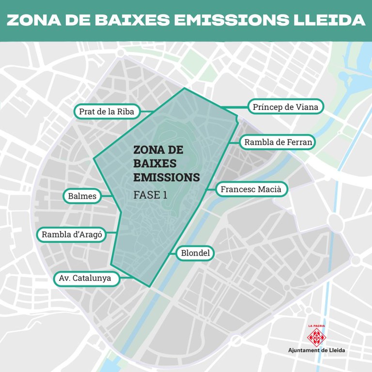 El perímetro de la ZBE también se irá modificando. Así, de entrada abarcará el Centro Histórico, incluyendo el área delimitada por Rambla Ferran, av. Cataluña, Rambla de Aragón, Balmes, Prat de la Riba y Príncipe de Viana. A partir de 2028 está previsto que se modifique para incluir toda la parte central de la ciudad, entre avenida del Segre-Francisco Macià-Avenida de Madrid, hasta Ronda y Príncipe de Viana. Finalmente, el 1 de enero de 2030, está previsto ampliarla también en el barrio de Cappont (ver plano adjunto).